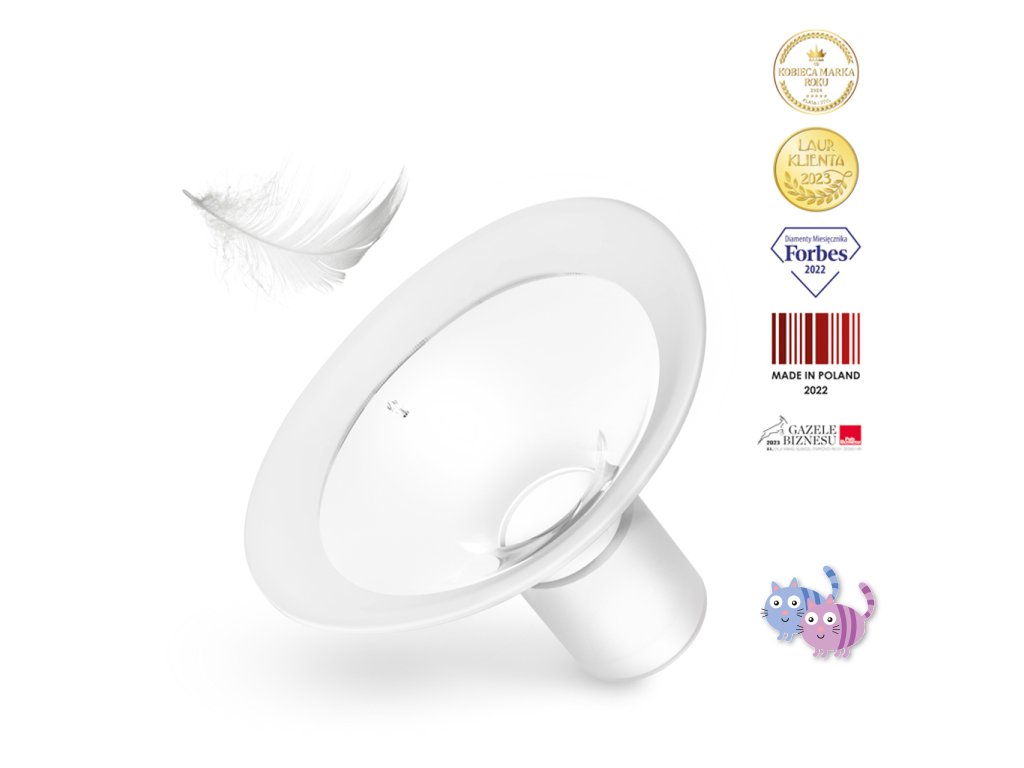 - Měkký silikonový kryt – dokonale se přizpůsobí tvaru prsu, rovnoměrně rozloží tlak a snižuje riziko podráždění