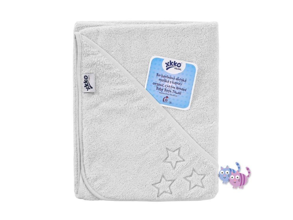 BIO bavlněná froté osuška s kapucí XKKO Organic 90x90 - White Stars