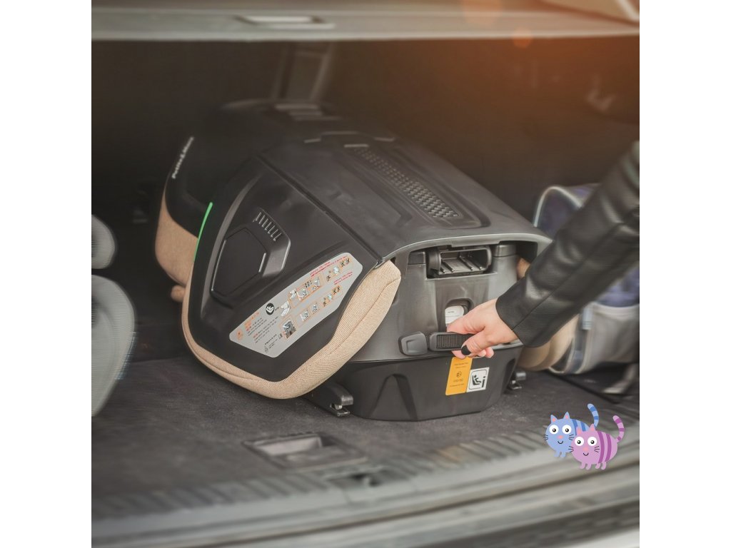 Autosedačka je unikátní v tom, že ji lze zcela sklopit a tím ji snadno uskladníte ať už doma nebo v kufru auta.