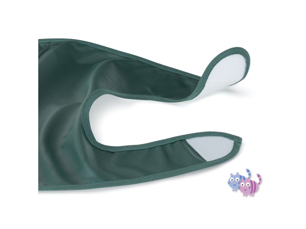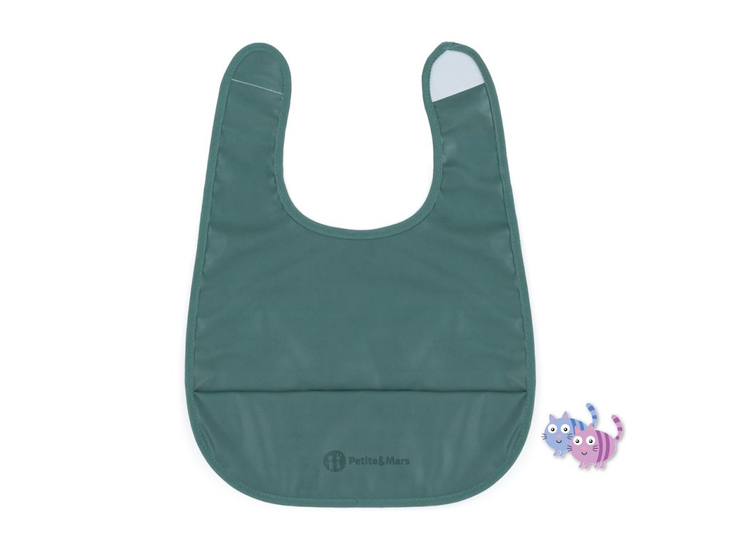 Bryndák je vybaven kapsičkou na drobky, která pomáhá udržet pořádek a pohodlí během jídla. Díky nastavitelnému zapínání na jemný suchý zip se snadno přizpůsobí krku dítěte. Po každém použití ho stačí otřít vlhkým hadříkem a je opět čistý.