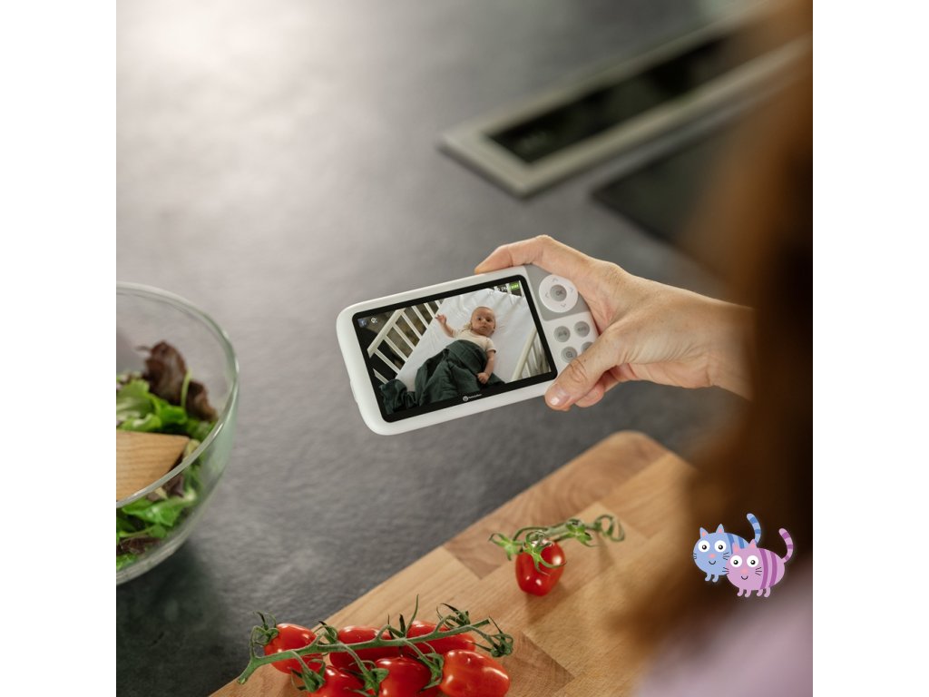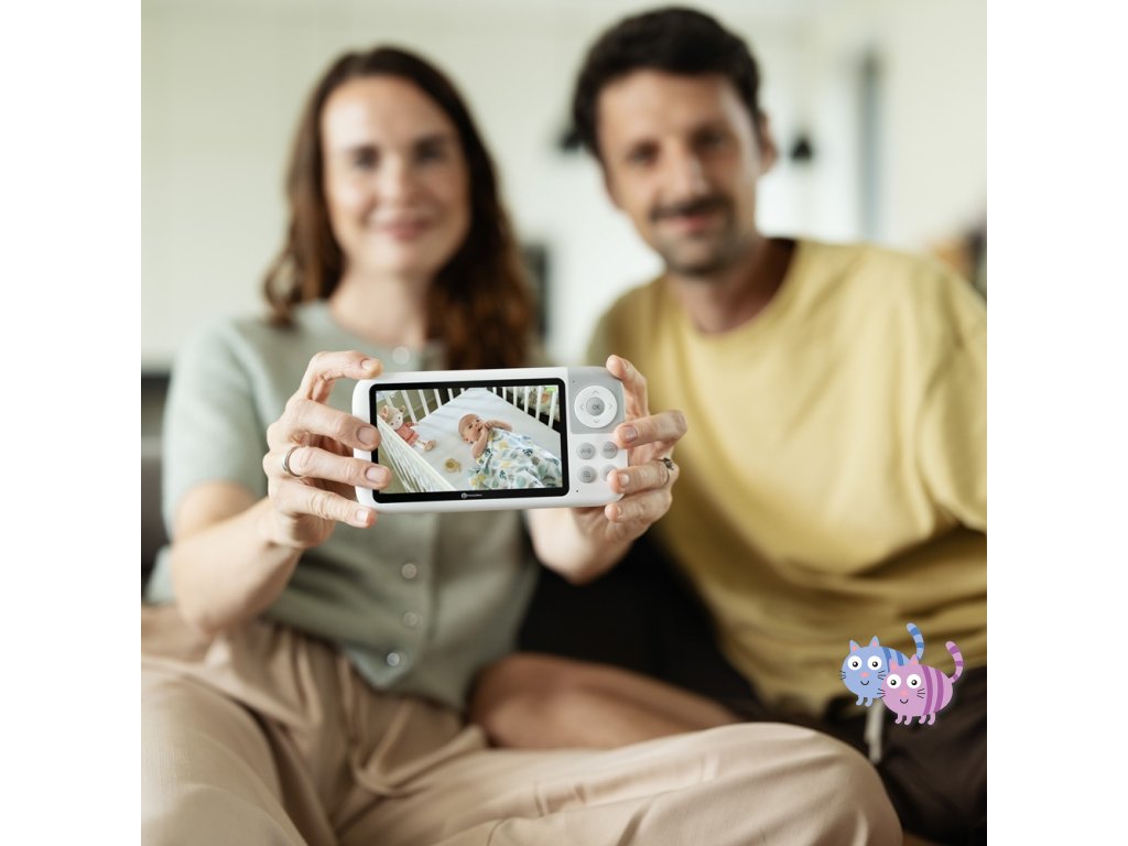 Chůvička je vybavena kamerou s možností dálkového ovládání, takže máte obraz neustále pod kontrolou – ať se dítě pohne kamkoliv. Systém lze rozšířit až na 4 kamery, což z něj činí ideální řešení pro více místností nebo více dětí.