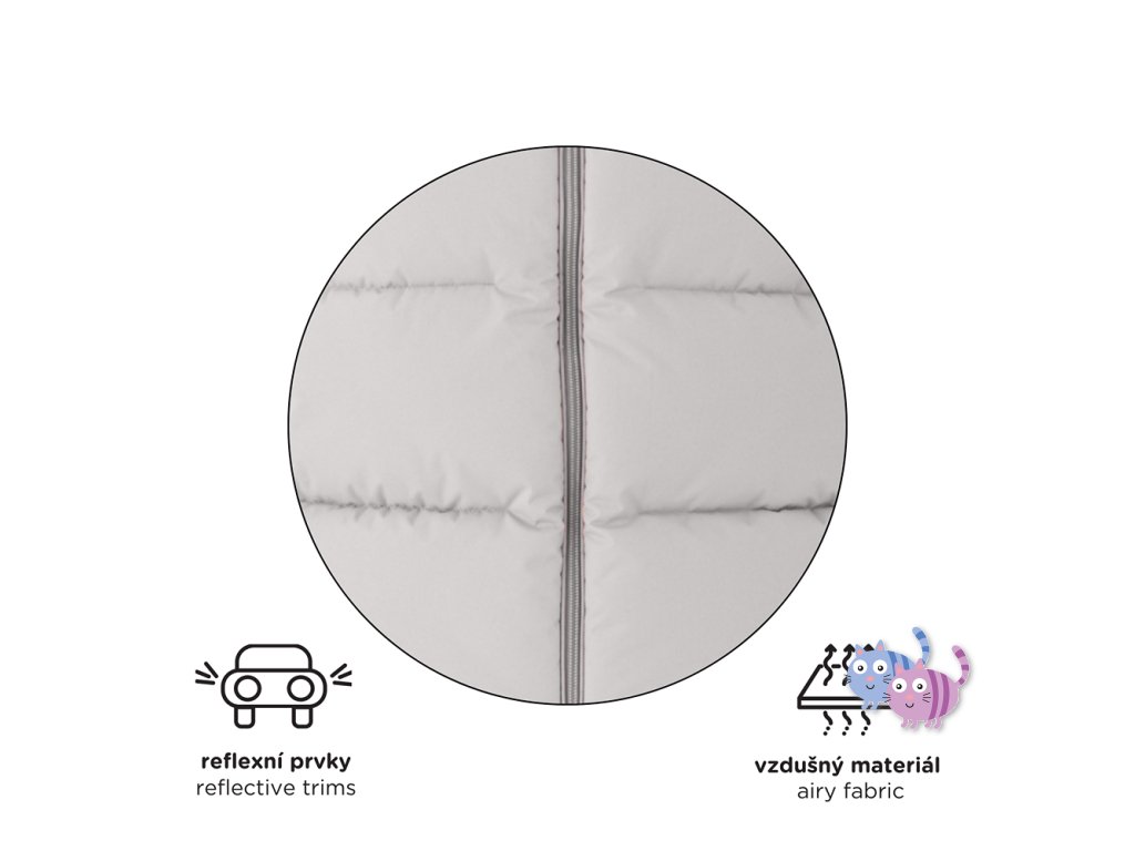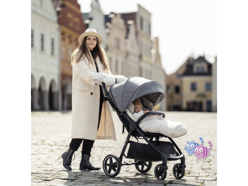 - 4v1 – odepnutím spodní části změníte velikost fusaku na menší, který se hodí i do vaničky nebo autosedačky, a připevněním kožešinky – získáte ochranu proti větru.