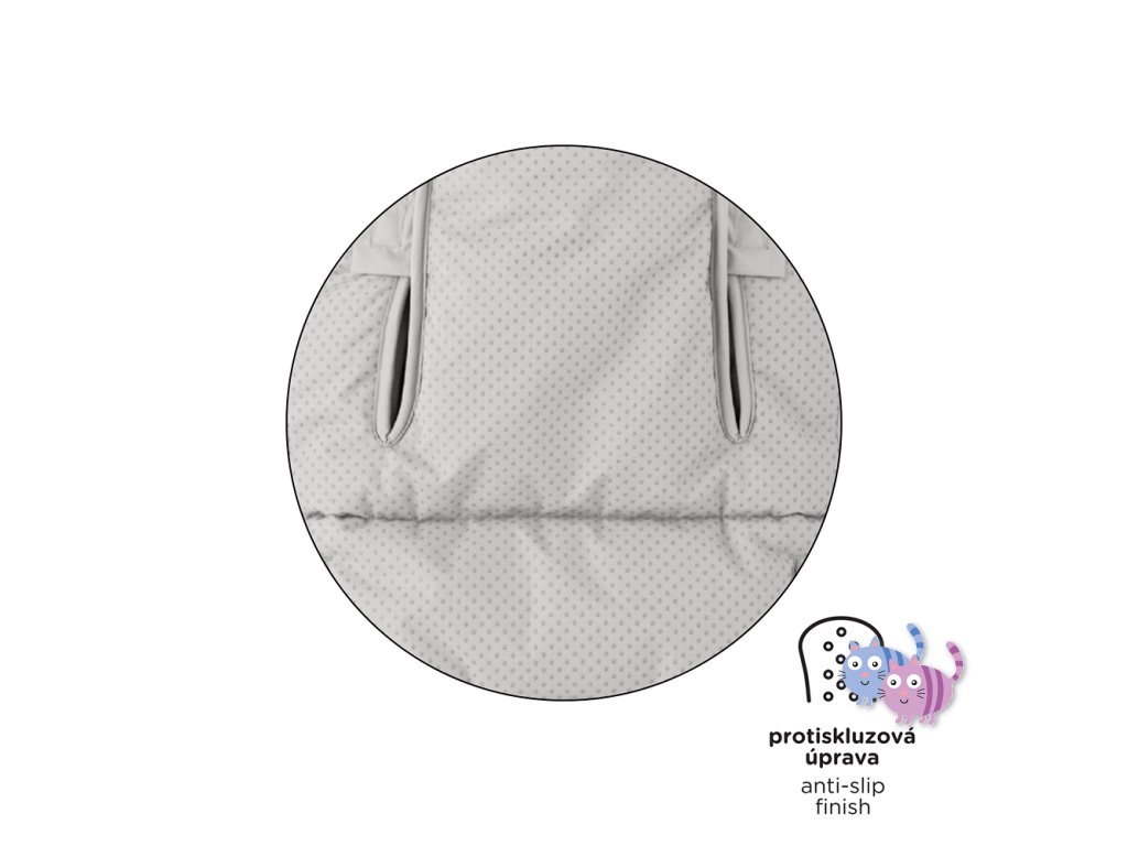 - Protiskluzový povrch na zadní straně (ABS) zabraňuje sklouznutí dítěte v kočárku.