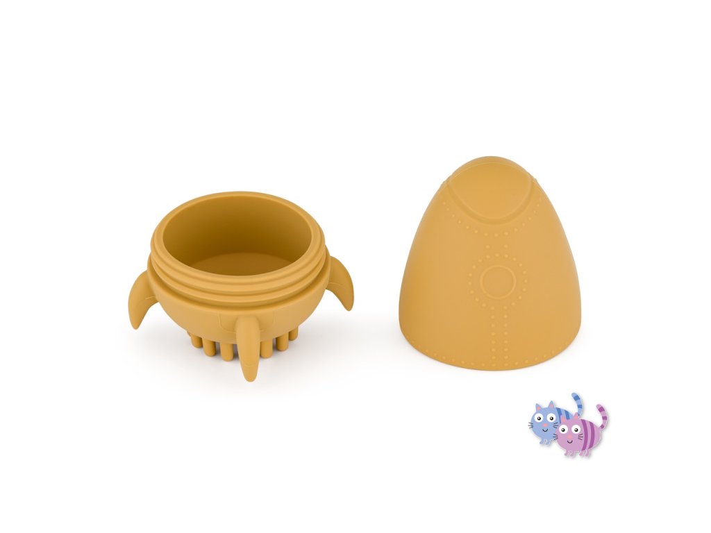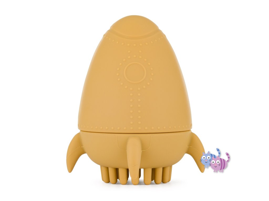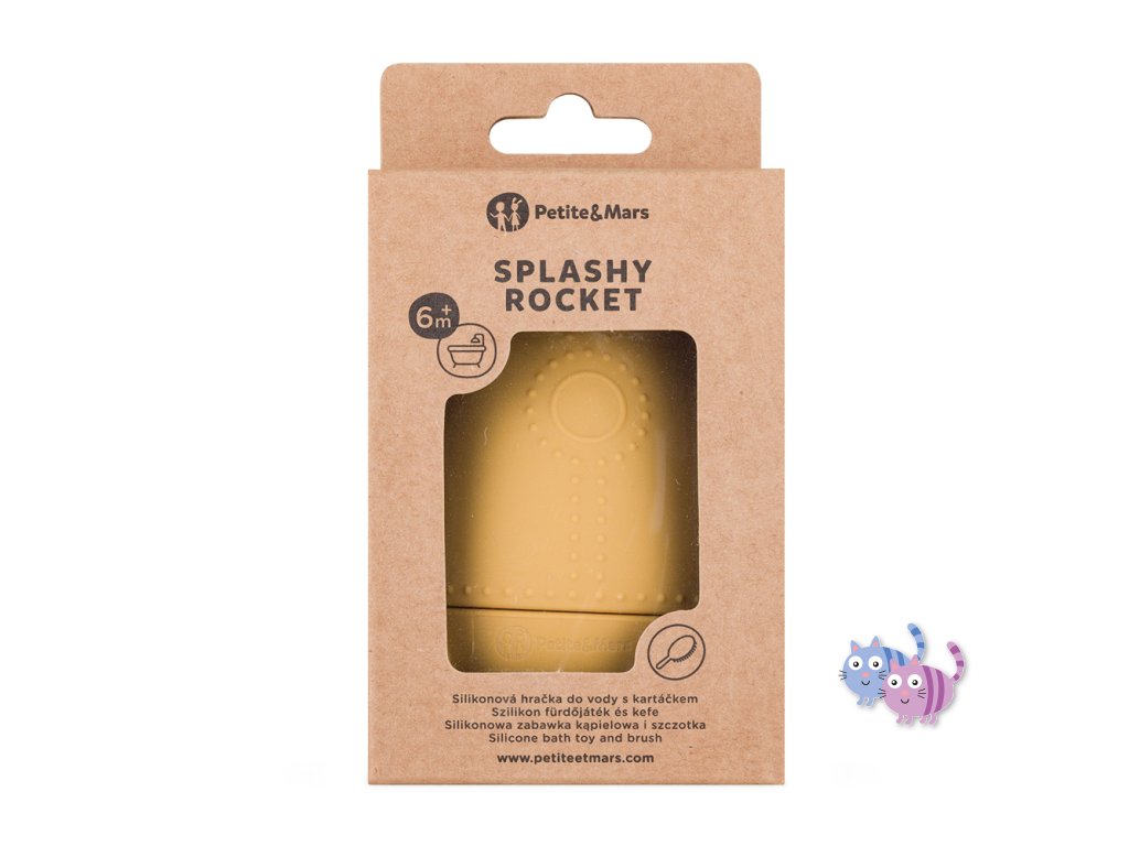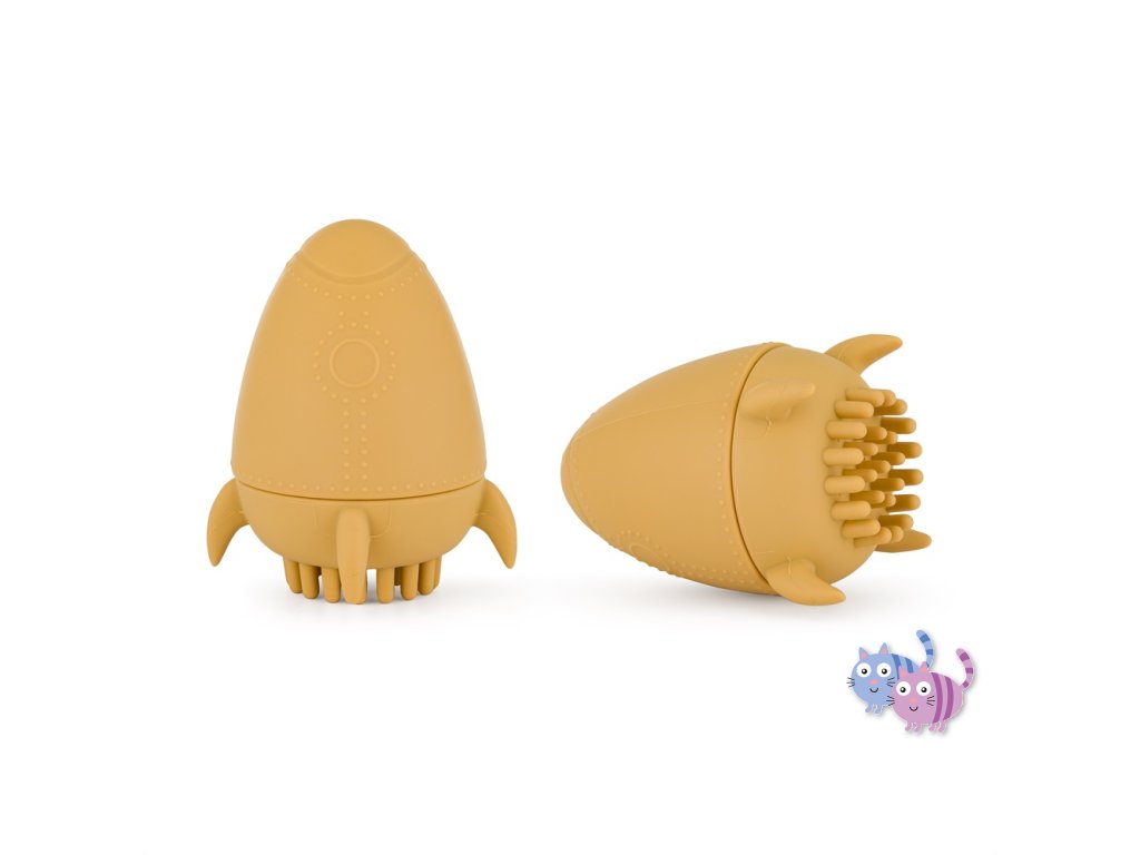 PETITE&MARS Hračka silikonová do vody s kartáčkem Splashy Rocket Intense Ochre 6m+