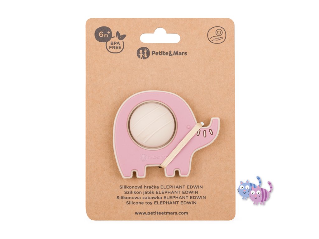 PETITE&MARS Hračka silikonová Elephant Edwin Dusty Rose 6m+