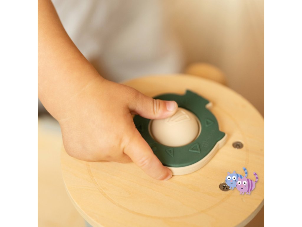 Elastické tlačítko lze mačkat a posouvat z jedné strany na druhou, což podporuje rozvoj jemné motoriky a obratnosti prstů.