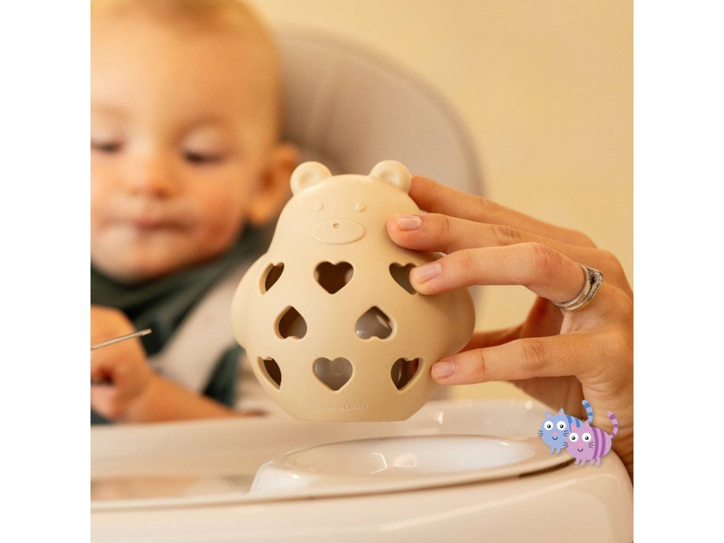 Tento roztomilý medvídek je ideální kombinace chrastítka a kousátka! Vyrobený ze 100% potravinářského silikonu, je bezpečný a příjemný pro miminka od prvního dne. Měkký silikon ulevuje dásním při prořezávání zoubků, zatímco jemné chrastění upoutá pozornost dítěte a stimuluje jeho sluch. Hračka Bear Basil podporuje rozvoj motoriky – snadno se drží i v malých ručičkách. Je odolná, lehká a snadno se čistí, což z ní činí skvělou volbu pro každého rodiče, který hledá kombinaci praktičnosti a zábavy.