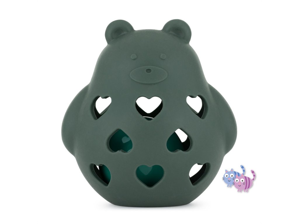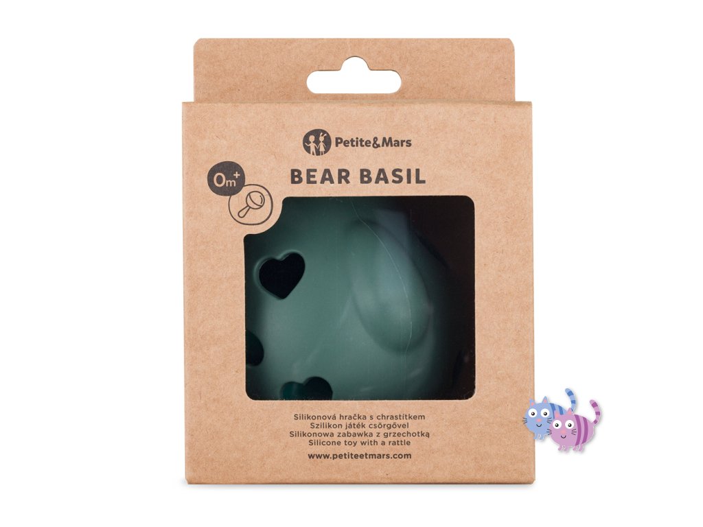 PETITE&MARS Hračka silikonová s chrastítkem Bear Basil Misty Green 0m+