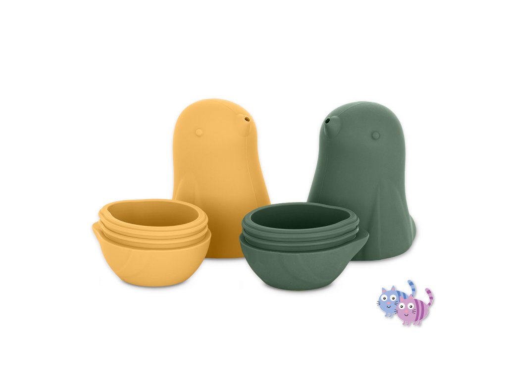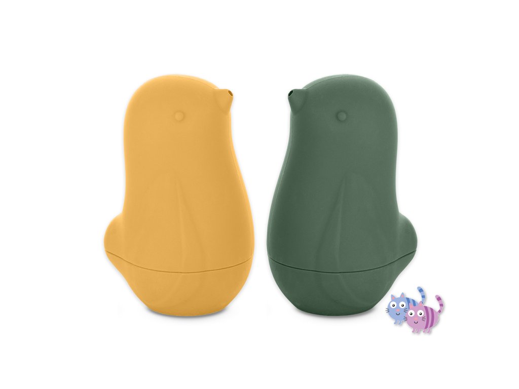 PETITE&MARS Hračky silikonové do vody Love birds Ochre Green 6m+