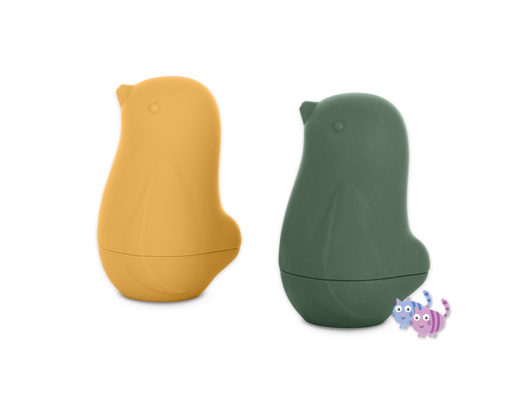 Měkké silikonové hračky jsou vyrobeny výhradně z potravinářského silikonu bez obsahu BPA. Nejkvalitnější, odolné materiály, pozornost věnovaná detailům a vhodně zvolené velikosti ptáčků umožňují děťátku snadno je uchopit a bezpečně si hrát, čímž stimulují jeho rozvoj.