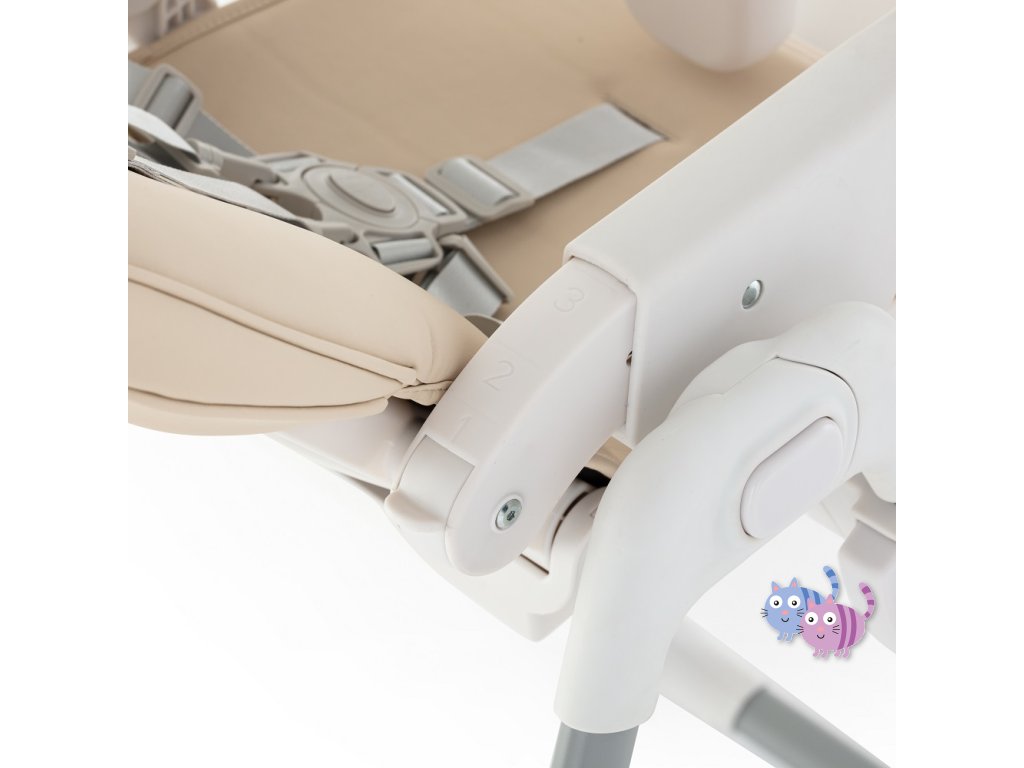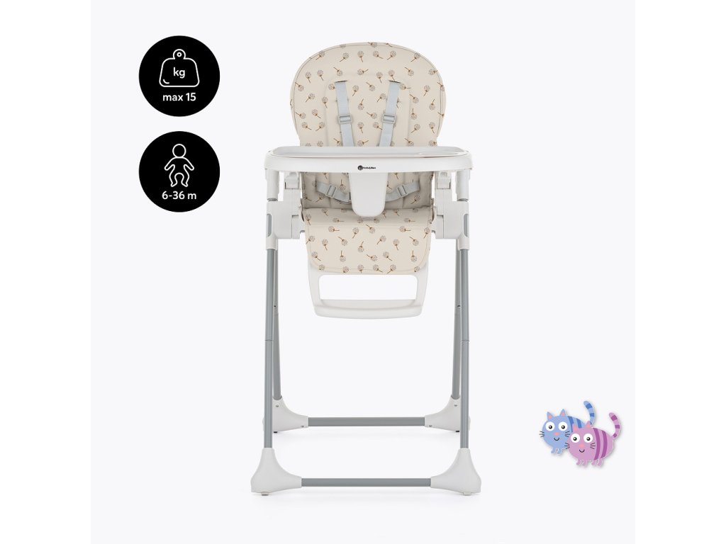 Péče o životní prostředí, kterou jsme při tvorbě této židle zohlednili, nezastínila nejdůležitější aspekty výrobku – byl totiž navržen tak, aby co nejbezpečněji zlepšil každodenní život děťátka i rodičů. Židle má všechny funkce, které usnadňují každodenní krmení: lze ji snadno sundat a vyčistit, má 5-bodové bezpečnostní pásy, nastavitelnou opěrku zad, nastavitelnou opěrku nohou, nastavitelnou výšku, dvě polohy pro podnos s horní částí, kterou lze mýt v myčce nádobí. Stabilní konstrukce židle zajistí bezpečnost vašeho dítěte bez ohledu na to, jak je aktivní nebo pohyblivé. Vysoce kvalitní provedení, promyšlená konstrukce, moderní a originální design a kompaktní skládání jsou nadčasové vlastnosti, které zajistí pohodlí pro vaše dítě od okamžiku, kdy se naučí sedět.