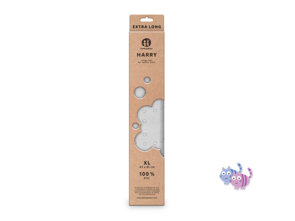Harry je skvělá pomůcka, která zaručuje bezpečnost a jistotu při koupání nebo sprchování až dvou dětí. Na rubové straně je opatřena přísavkami, které ji pevně drží na místě i na hladkém povrchu vany/ sprchového koutu, a zabrání tak uklouznutí dítěte. Extra délka zajišťuje pokrytí celého dna.