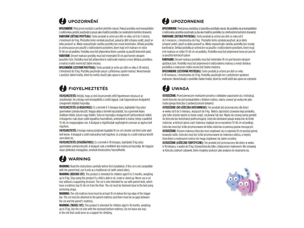 - Nosnost: postýlka 9 kg, cestovní postýlka 13 kg