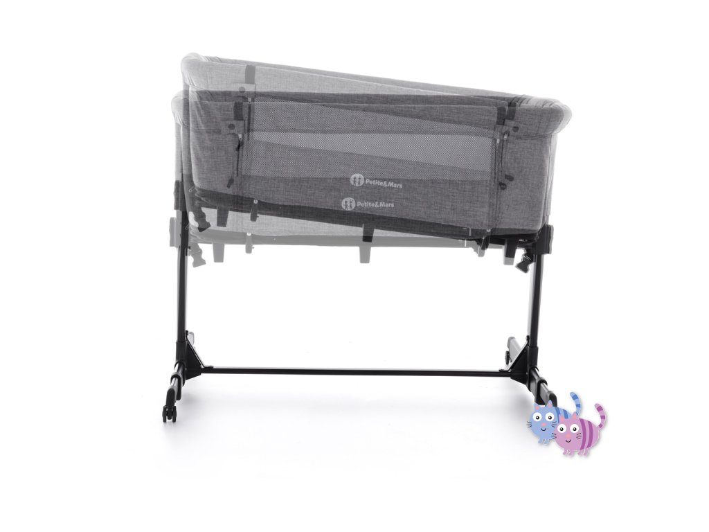 - Výška postýlky je nastavitelná do 5 poloh díky čemuž ji snadno přizpůsobíte výšce rodičovské postele (vhodná je pro postele, které mají vrch matrace ve výšce 55 – 66 cm od podlahy)