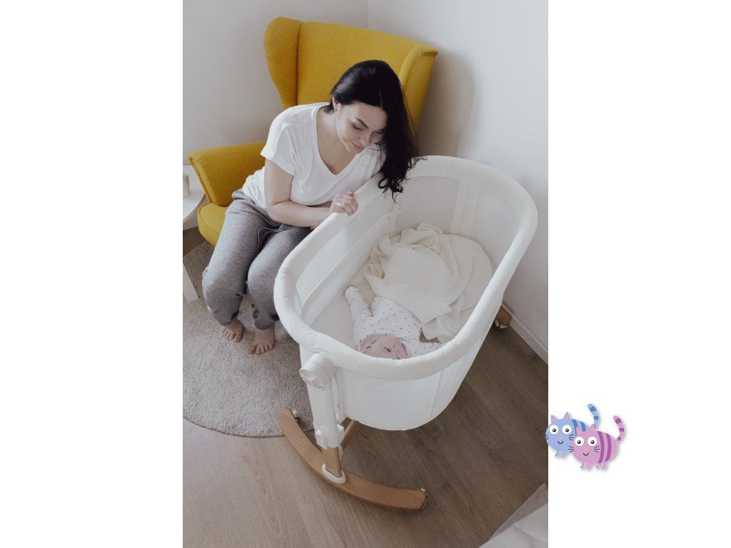 Postýlku lze použít jako samostatně stojící i jako přídavnou postýlku k rodičovské posteli. Zároveň však má funkci kolébky, takže děťátko v ní můžete uspávat jemným houpáním.
