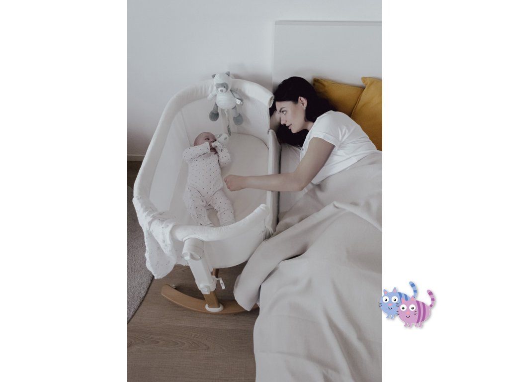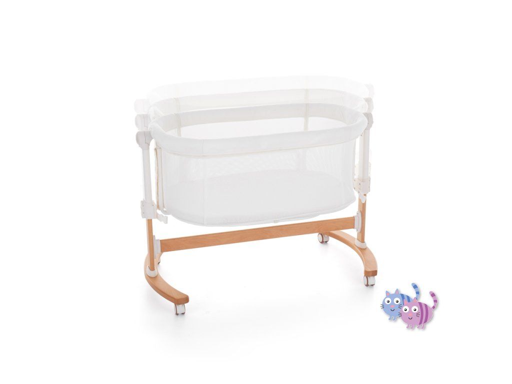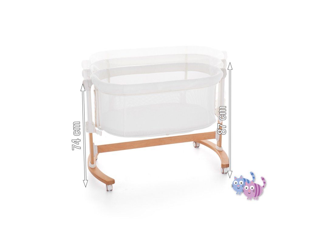 Postýlku lze použít jako samostatně stojící i jako přídavnou postýlku k rodičovské posteli. Zároveň však má funkci kolébky, takže děťátko v ní můžete uspávat jemným houpáním.