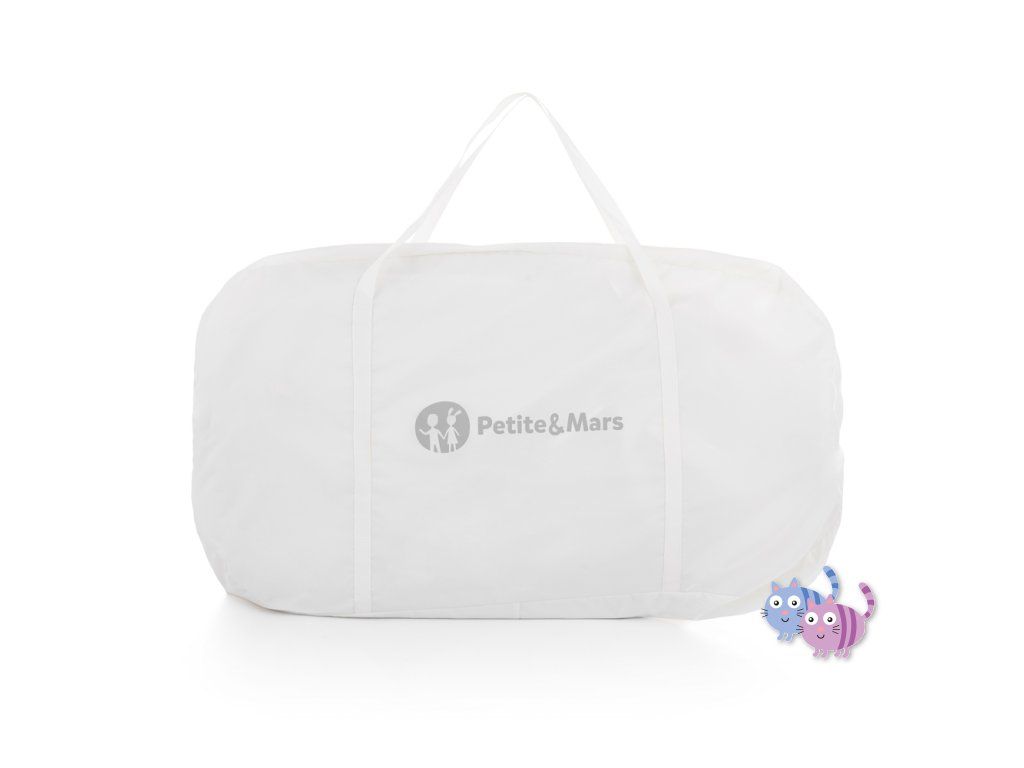 - Postýlku lze složit a uskladnit, případně přenášet v přidělené přenosné tašce