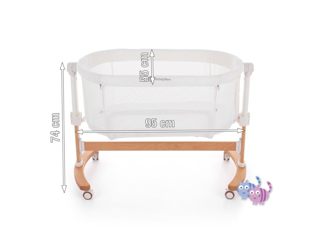 - Výška postýlky je nastavitelná do 5 poloh, snadno ji přizpůsobíte výšce rodičovské postele (vhodná je pro postele, které mají vršek matrace ve výšce 56,5 – 68,5 cm)