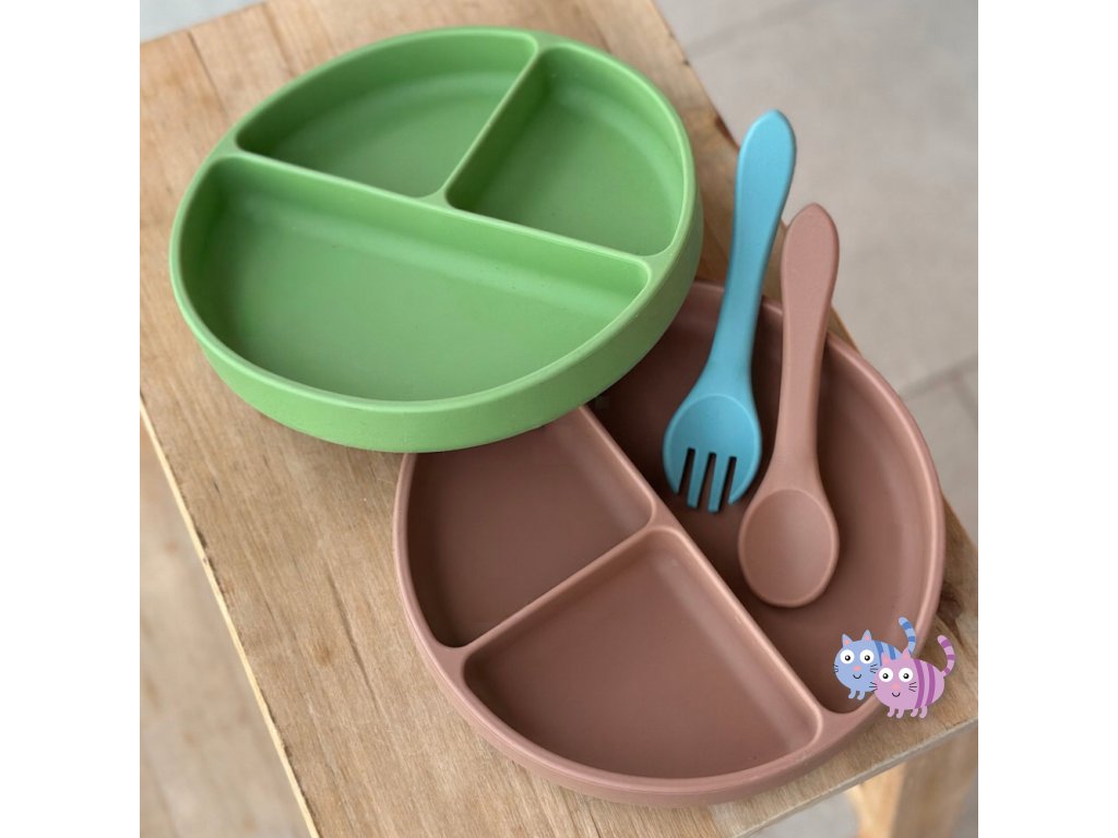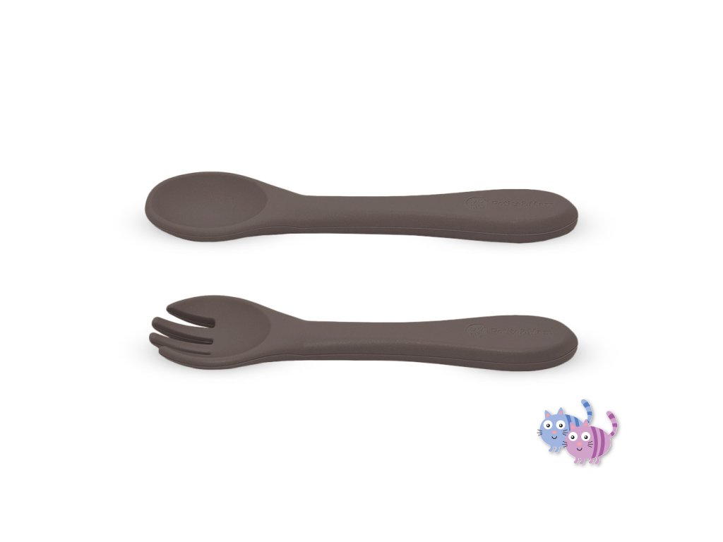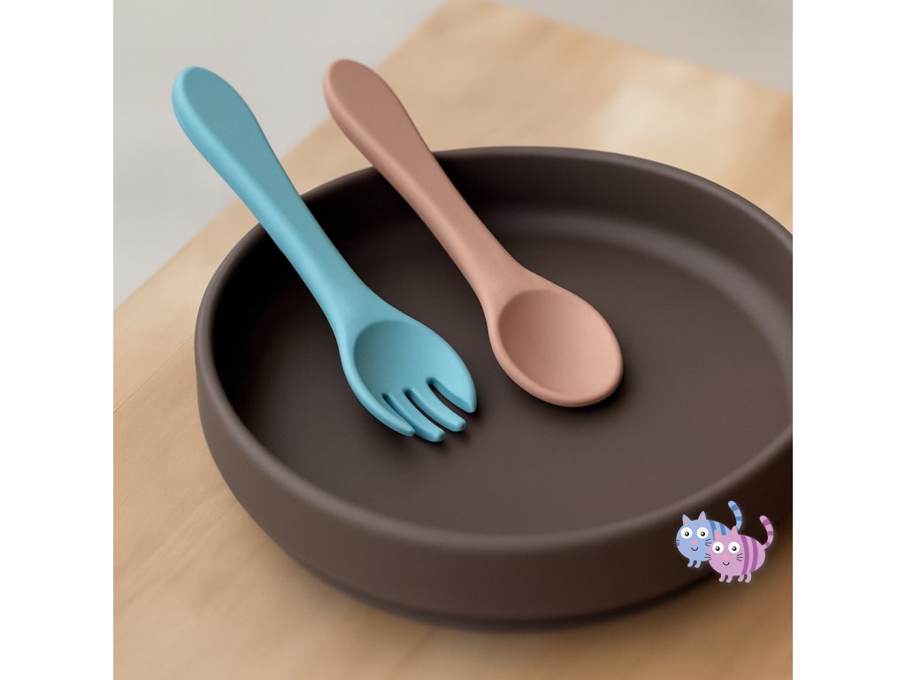Souprava sestávající z vidličky a lžičky je celá vyrobena z potravinářského silikonu bez obsahu BPA. Díky tomu může vaše dítě jíst příborem teplá i studená jídla. Díky pružnému silikonu je příbor ideální pro citlivé dásně malého dítěte. Příbor je vhodný pro děti od 6 měsíců, které se seznamují s pestrou stravou, a pro ty, které se již úspěšně učí jíst samy. Zaoblené tvary a malé rozměry usnadňují děťátku jejich uchopení a tím i papání.