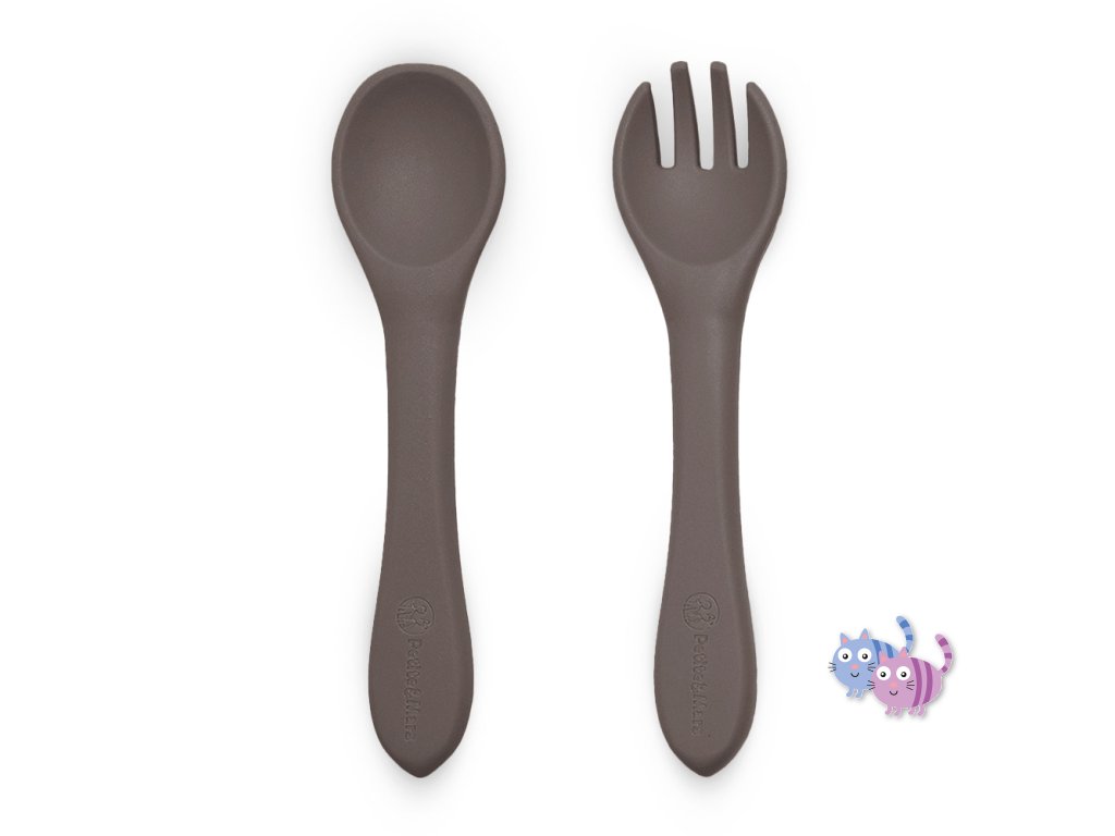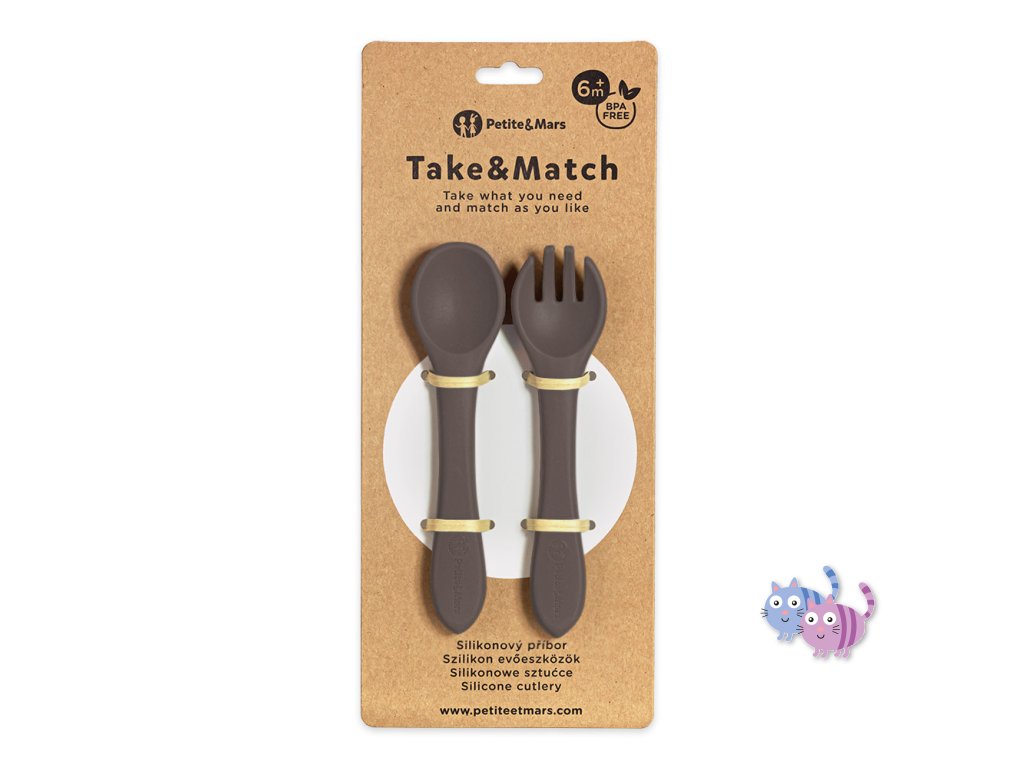 PETITE&MARS Příbor silikonový Take&Match Bitter Cocoa 6m+