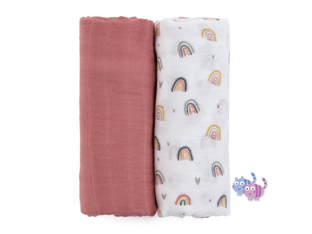 PETITE&MARS Přikrývka bambusová mušelínová 2ks Misty Rose Rainbow 2v1, 120 x 120 cm