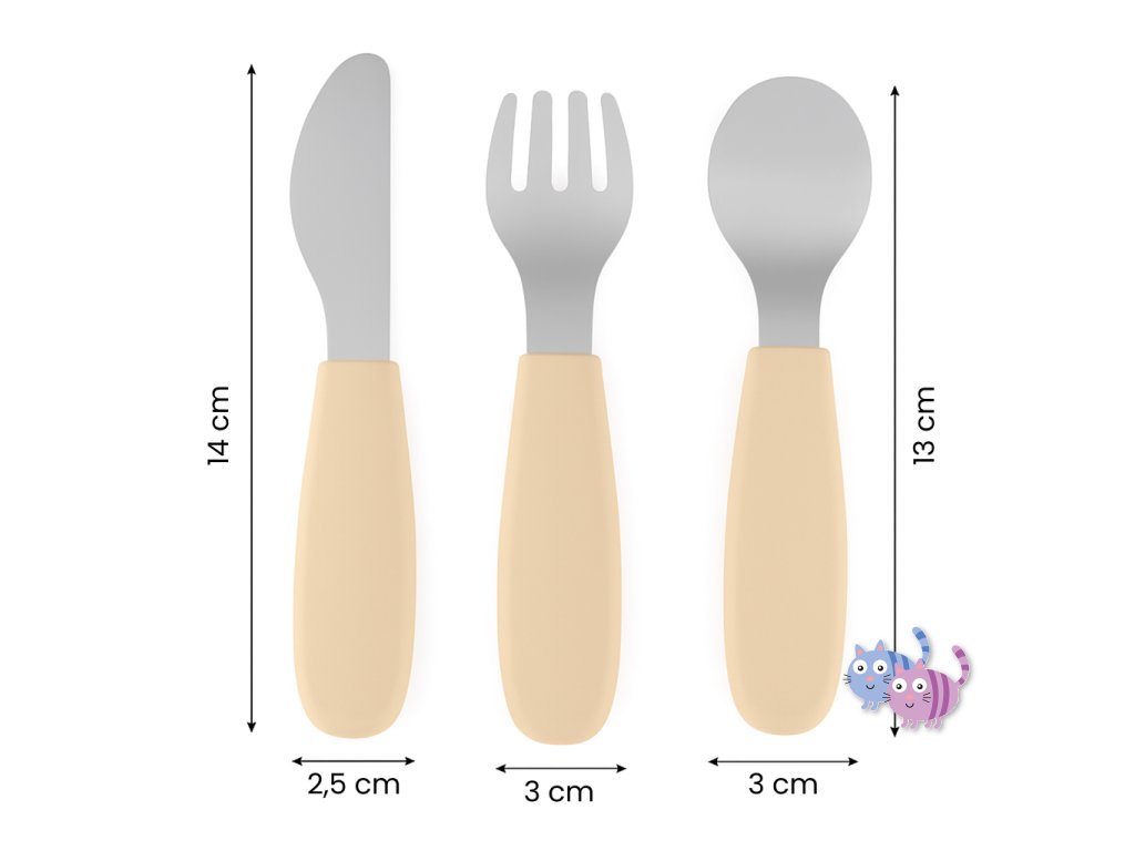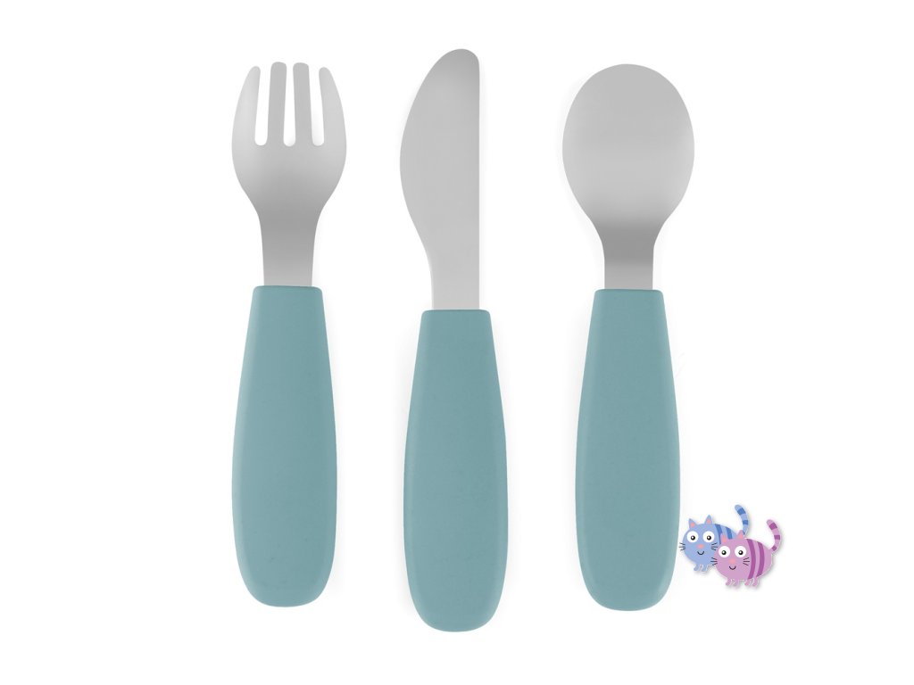 - Kompletní sada – 3 kusy: lžička, vidlička a nůž bezpečný pro děti