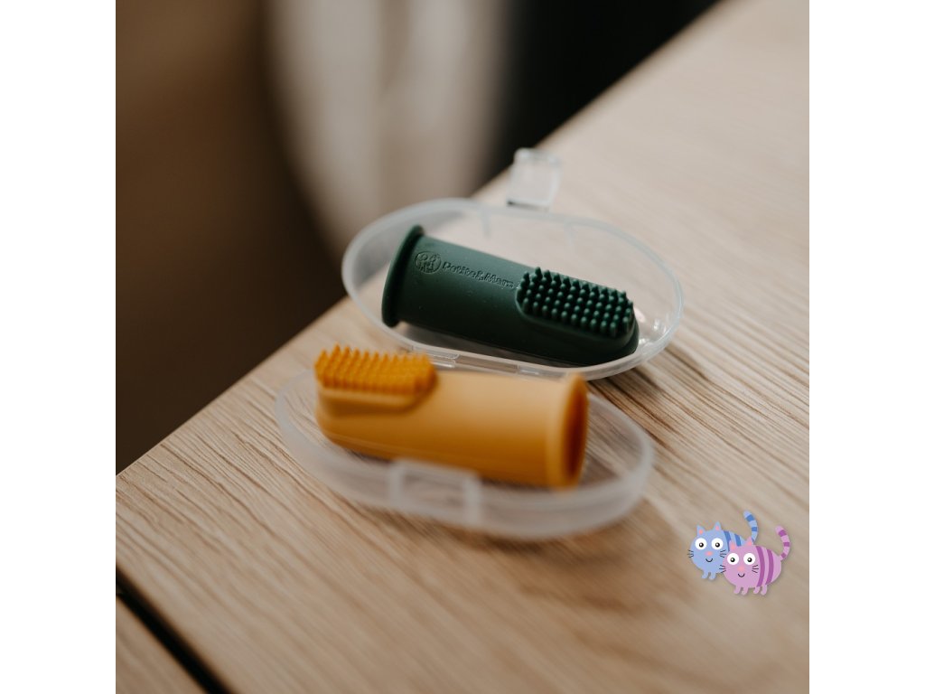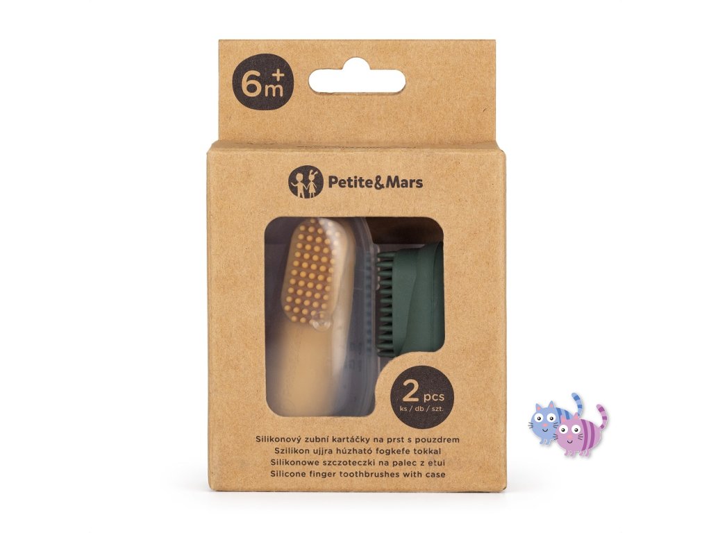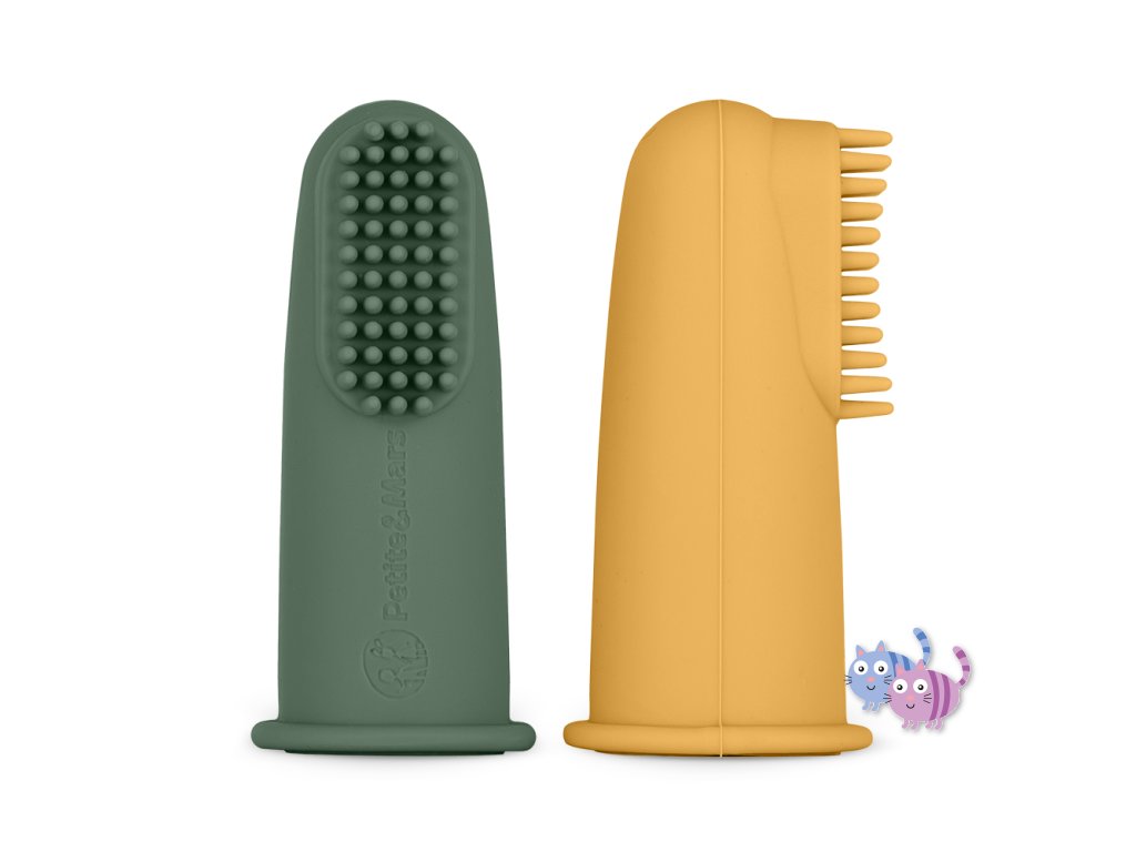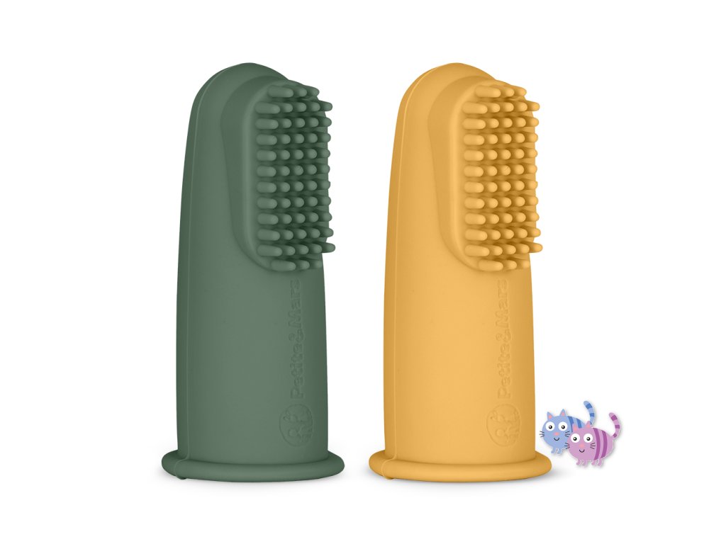 PETITE&MARS Sada silikonových zubních kartáčků na prst Ochre&Green 2 ks 0m+