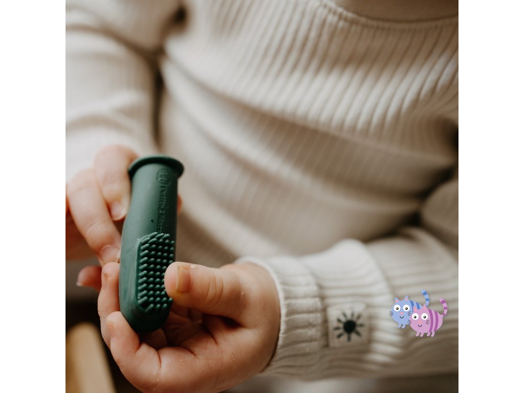Zubní kartáček v podobě krytky umístěné na prstu rodiče je vyroben z potravinářského silikonu bez BPA. Zubní kartáček stačí nasadit na ukazováček a začít jemnou masáž dásní a zubů vašeho dítěte. Každodenní zdravý návyk se tak zároveň stane příjemnou zábavou. Měkký a pružný silikon je příjemný na dotek a neubližuje citlivým ústům dítěte a pravidelné masírování zklidňuje dásně během prořezávání zoubků.