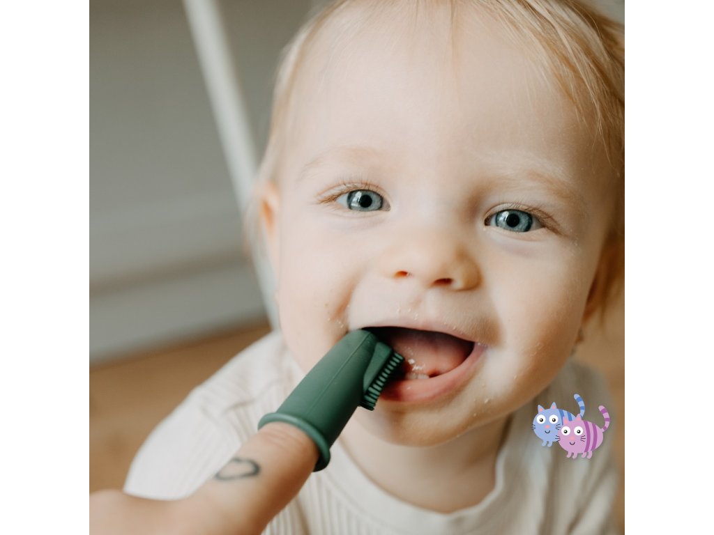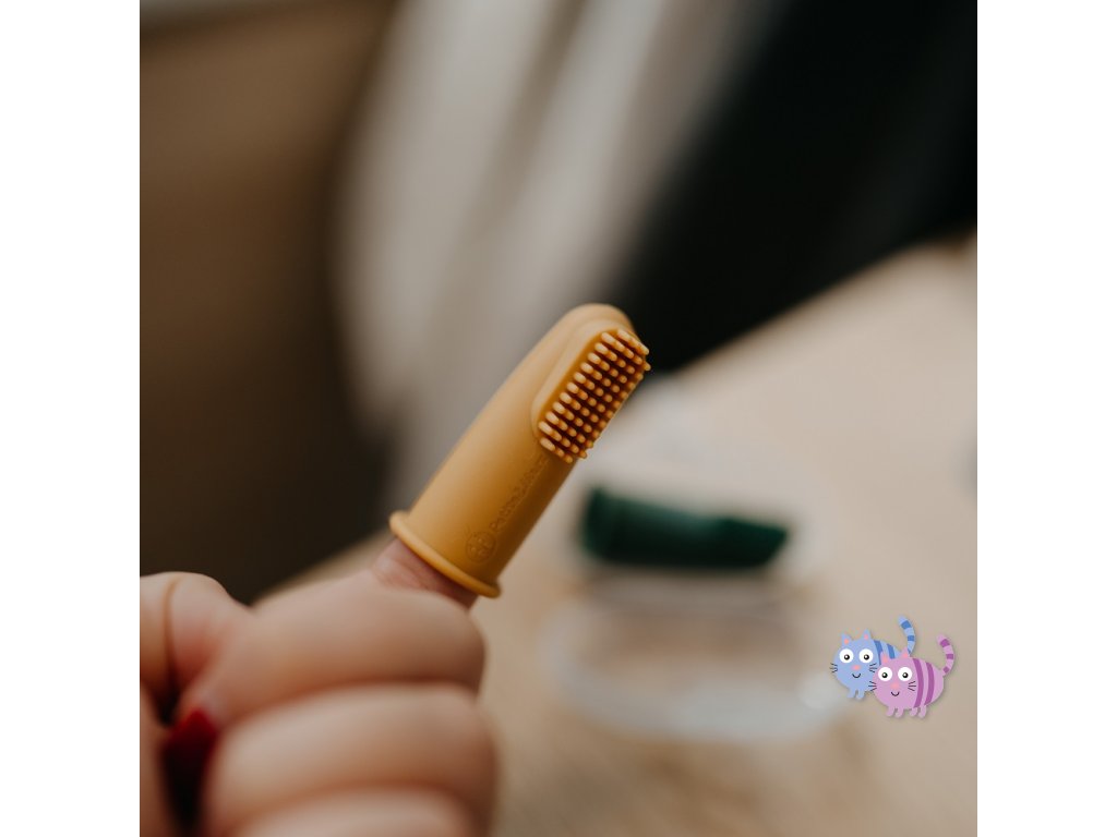 Zubní kartáček v podobě krytky umístěné na prstu rodiče je vyroben z potravinářského silikonu bez BPA. Zubní kartáček stačí nasadit na ukazováček a začít jemnou masáž dásní a zubů vašeho dítěte. Každodenní zdravý návyk se tak zároveň stane příjemnou zábavou. Měkký a pružný silikon je příjemný na dotek a neubližuje citlivým ústům dítěte a pravidelné masírování zklidňuje dásně během prořezávání zoubků.