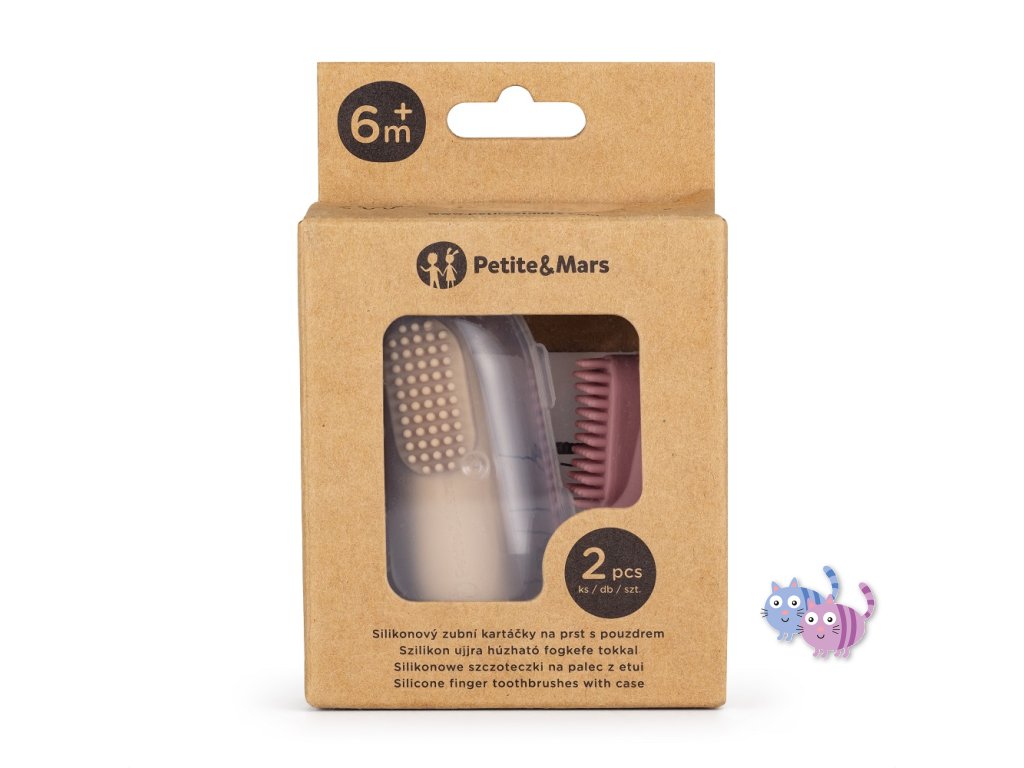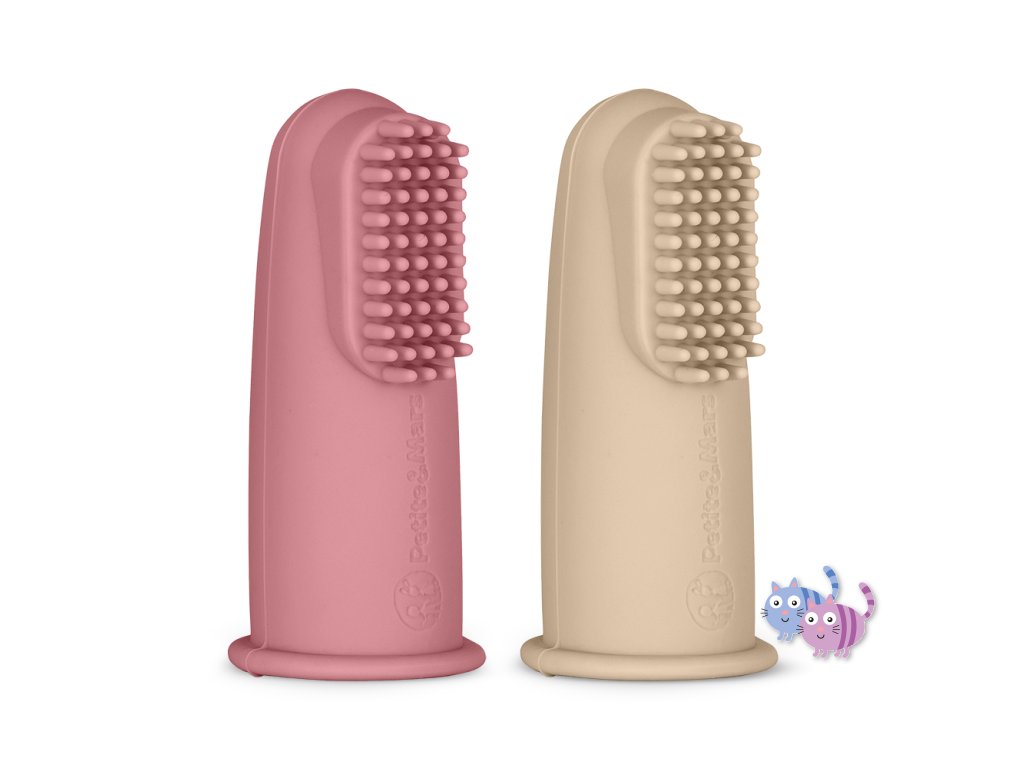 PETITE&MARS Sada silikonových zubních kartáčků na prst Rose&Sand 2 ks 0m+
