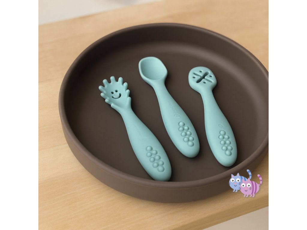 Set je vyroben z potravinářského silikonu bez obsahu BPA. Díky tomu může vaše dítě s příborem jíst teplé, studené a různé konzistence jídel. Díky pružnému silikonu jsou lžičky ideální pro citlivé dásně malého dítěte. Lžičky jsou vhodné pro děti od 6 měsíců, které se seznamují s prvními příkrmy, a pro ty, které se již úspěšně učí jíst samy. Zaoblené tvary a malé rozměry usnadňují děťátku jejich uchopení a papání.