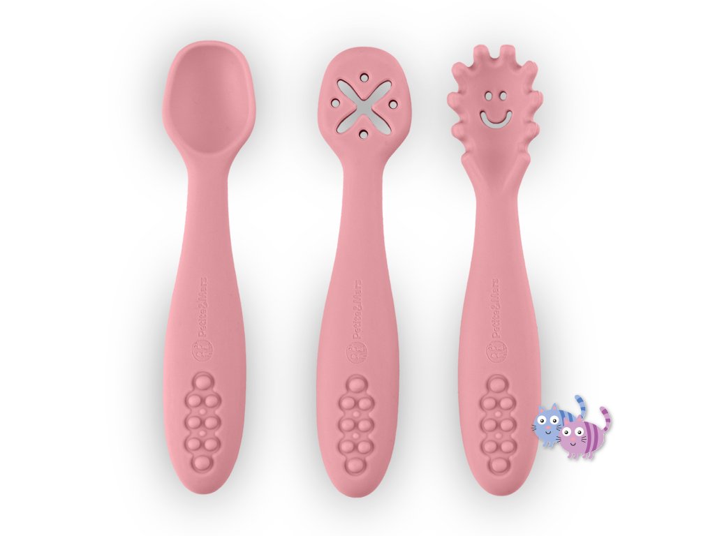 PETITE&MARS Set 3 ks silikonových tréninkových lžiček Take&Match Dusty Rose 6m+