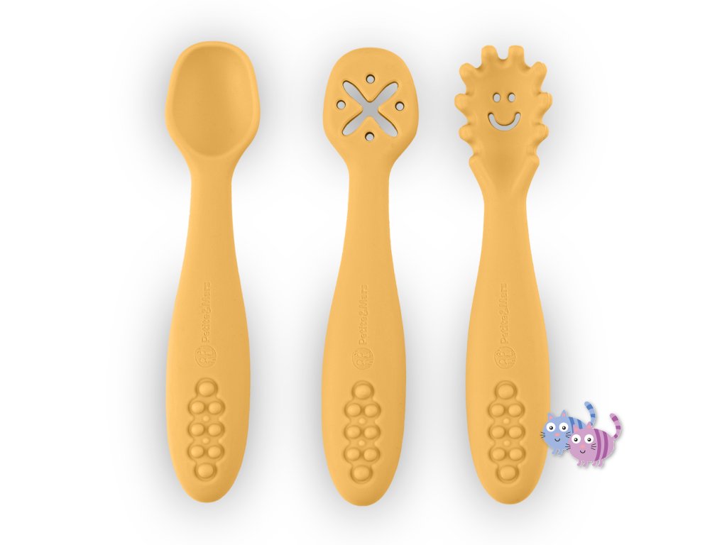 PETITE&MARS Set 3 ks silikonových tréninkových lžiček Take&Match Intense Ochre 6m+