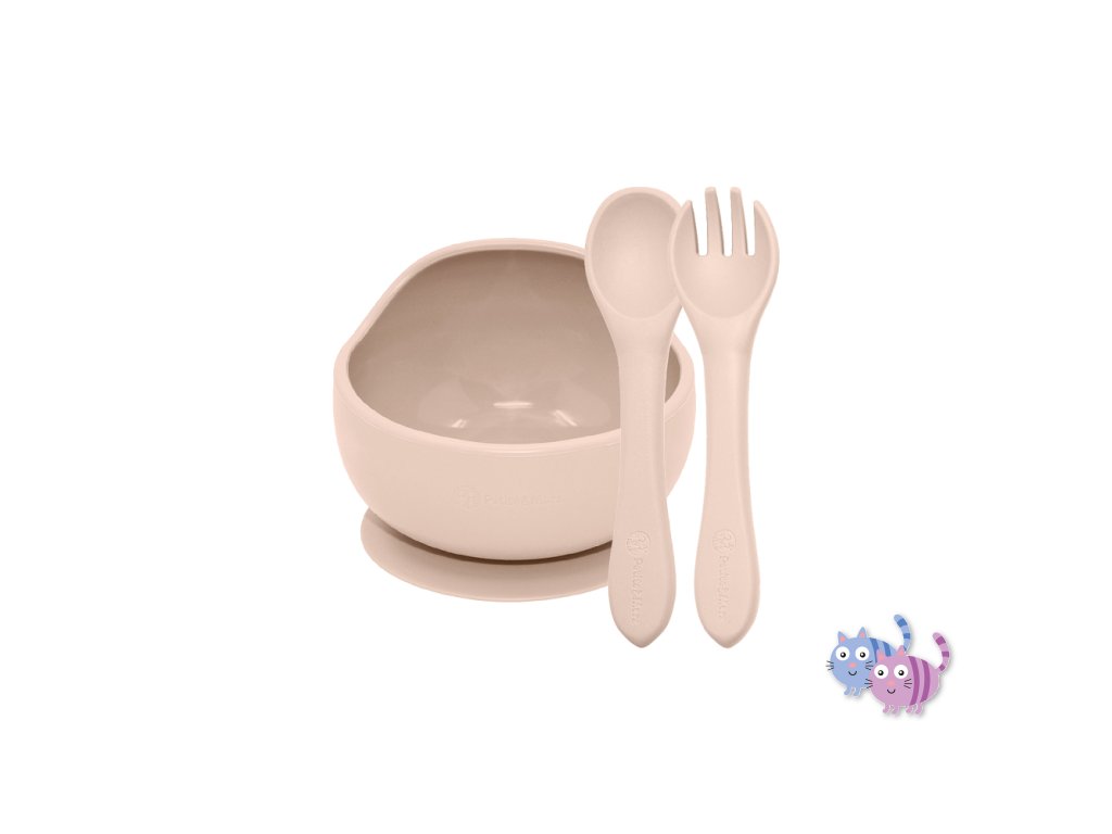PETITE&MARS Set jídelní silikonový TAKE&MATCH 2 ks miska + příbor Desert Sand 6m+