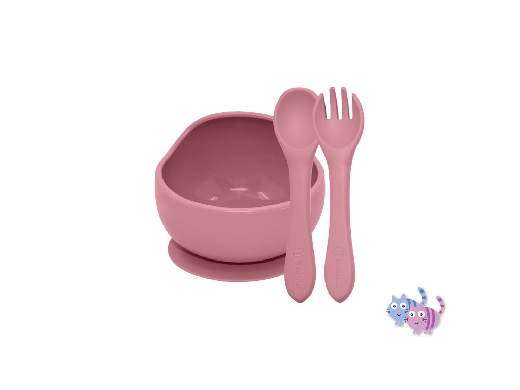 PETITE&MARS Set jídelní silikonový TAKE&MATCH 2 ks miska + příbor Dusty Rose 6m+