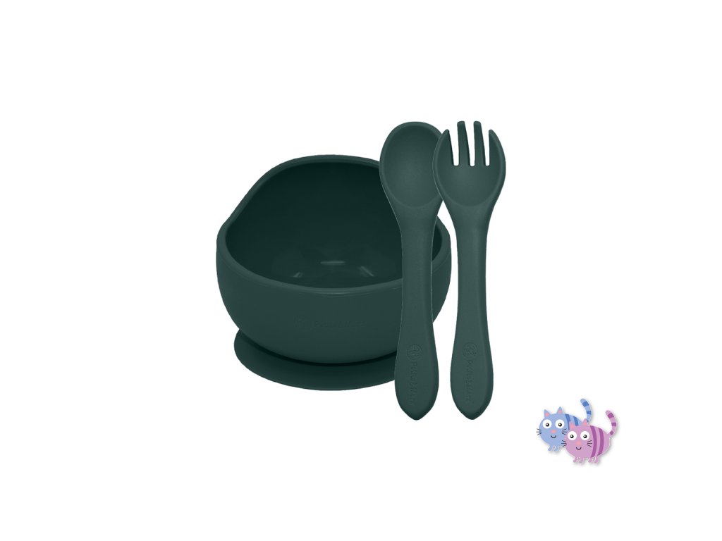 PETITE&MARS Set jídelní silikonový TAKE&MATCH 2 ks miska + příbor Misty Green 6m+