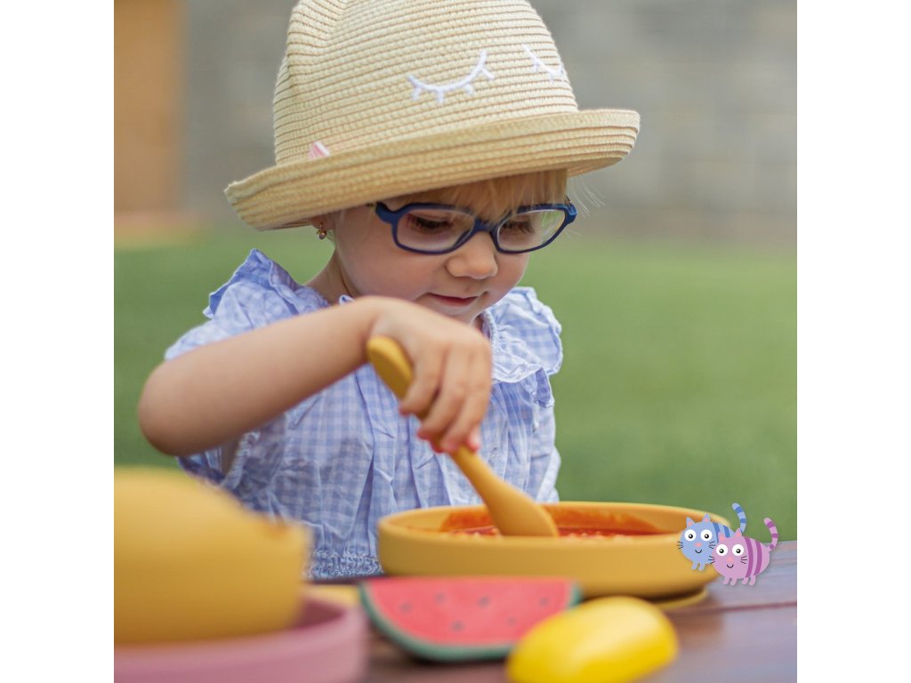Sada sestávající z vidličky a lžičky je celá vyrobena z potravinářského silikonu bez obsahu BPA. Díky tomu může vaše dítě jíst příborem teplá i studená jídla. Díky pružnému silikonu je příbor ideální pro citlivé dásně malého dítěte. Příbor je vhodný pro děti od 6 měsíců, které se seznamují s pestrou stravou, a pro ty, které se již úspěšně učí jíst samy. Zaoblené tvary a malé rozměry usnadňují děťátku jejich uchopení a tím i papání.