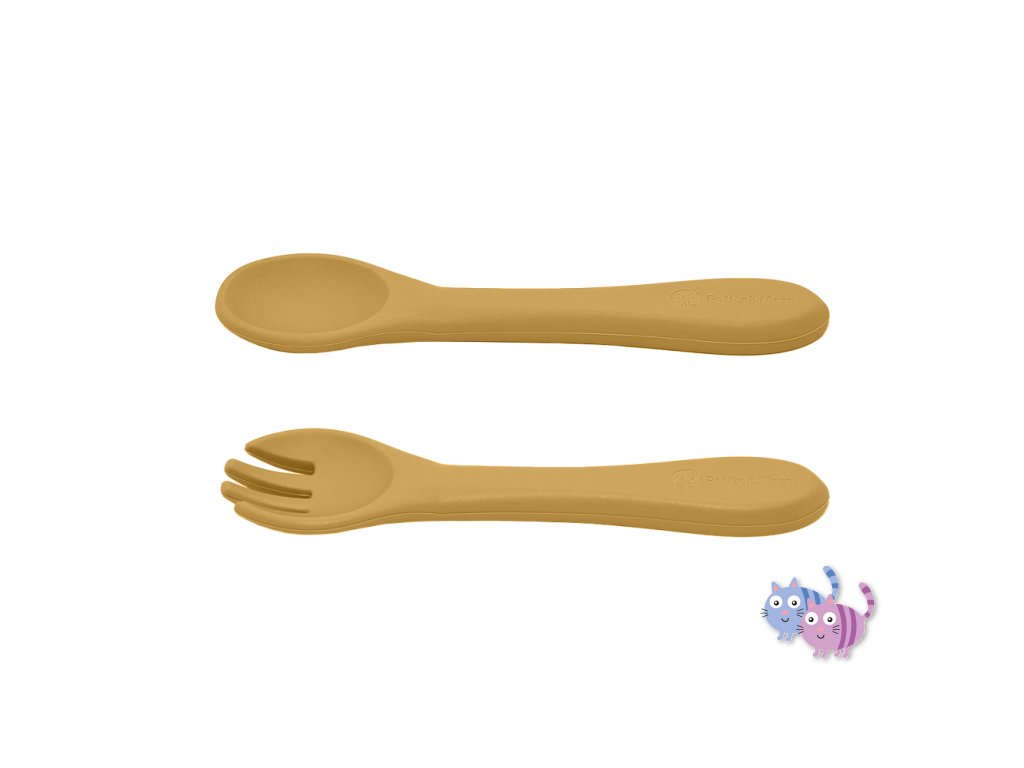 Sada sestávající z vidličky a lžičky je celá vyrobena z potravinářského silikonu bez obsahu BPA. Díky tomu může vaše dítě jíst příborem teplá i studená jídla. Díky pružnému silikonu je příbor ideální pro citlivé dásně malého dítěte. Příbor je vhodný pro děti od 6 měsíců, které se seznamují s pestrou stravou, a pro ty, které se již úspěšně učí jíst samy. Zaoblené tvary a malé rozměry usnadňují děťátku jejich uchopení a tím i papání.