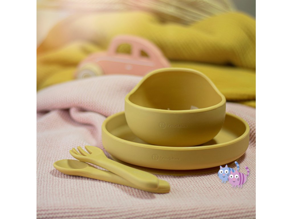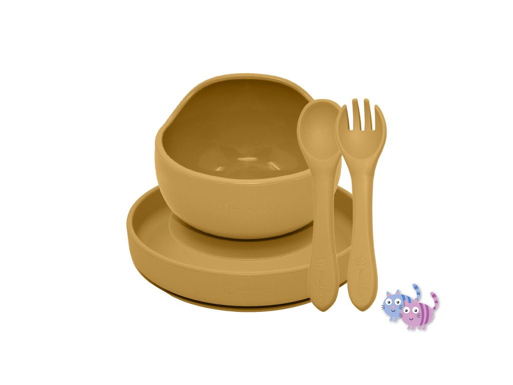 PETITE&MARS Set jídelní silikonový TAKE&MATCH 3 ks Intense Ochre 6m+