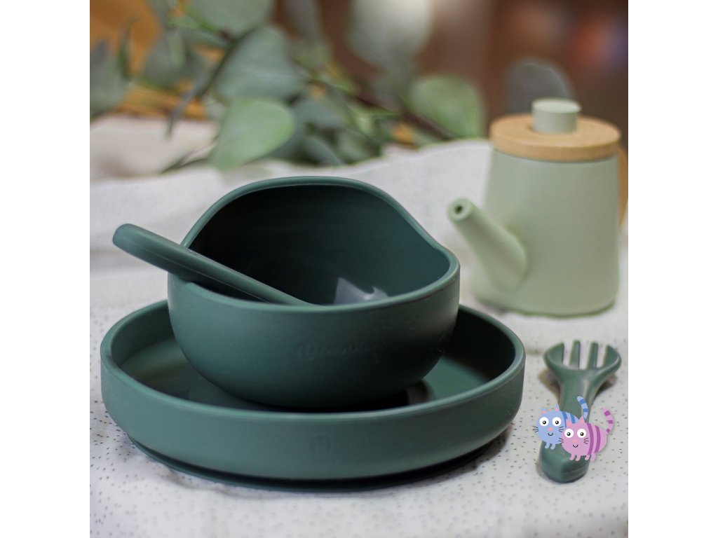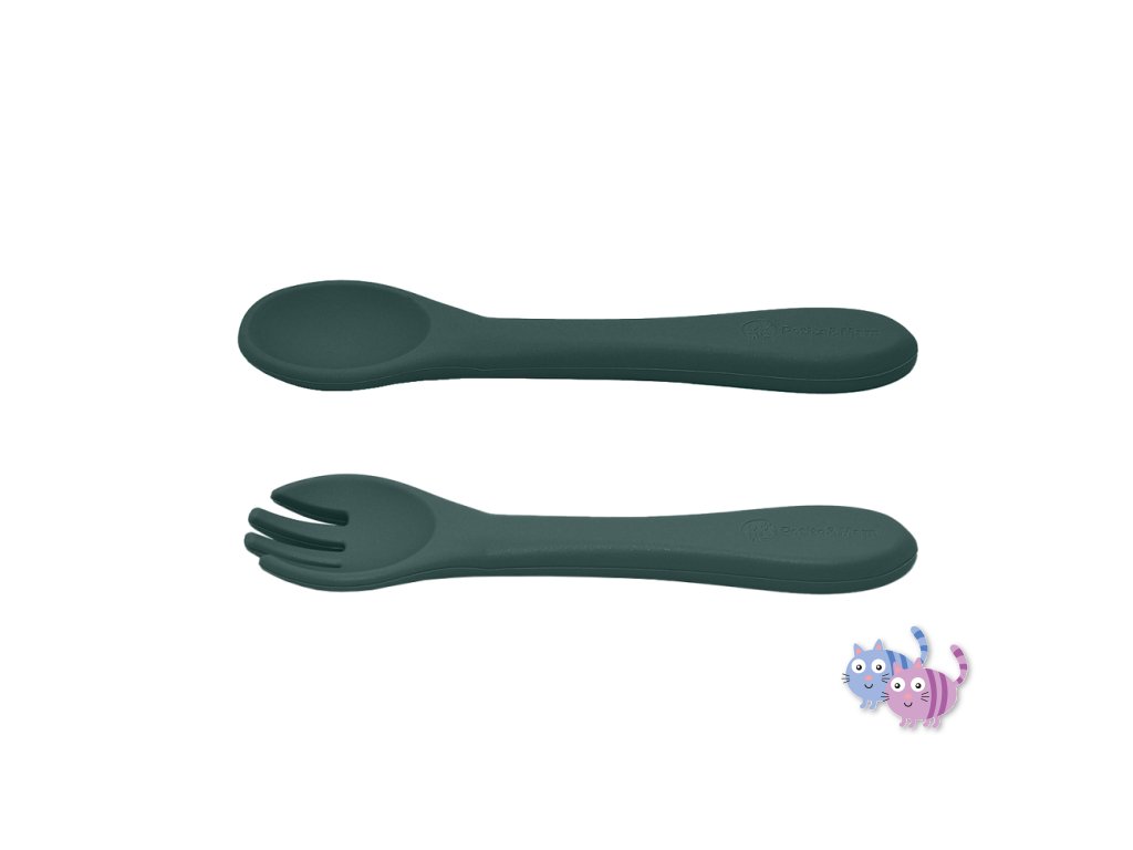 Sada sestávající z vidličky a lžičky je celá vyrobena z potravinářského silikonu bez obsahu BPA. Díky tomu může vaše dítě jíst příborem teplá i studená jídla. Díky pružnému silikonu je příbor ideální pro citlivé dásně malého dítěte. Příbor je vhodný pro děti od 6 měsíců, které se seznamují s pestrou stravou, a pro ty, které se již úspěšně učí jíst samy. Zaoblené tvary a malé rozměry usnadňují děťátku jejich uchopení a tím i papání.