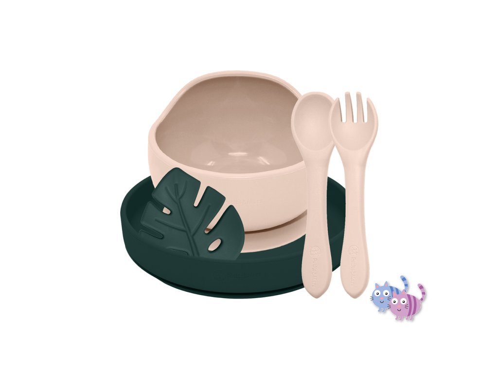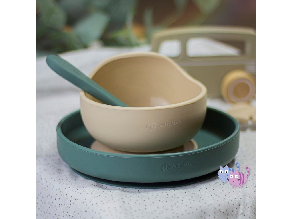 PETITE&MARS Set jídelní silikonový TAKE&MATCH 4 ks Desert Sand - Misty Green 6m+