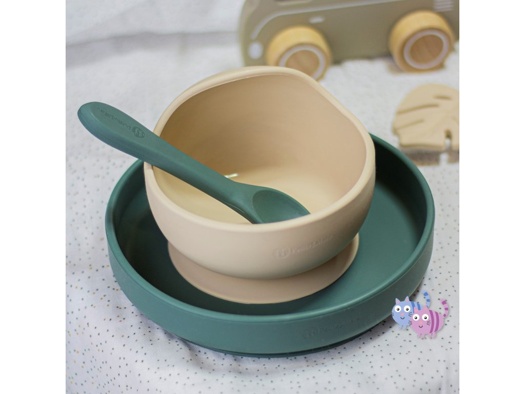 Sada sestávající z vidličky a lžičky je celá vyrobena z potravinářského silikonu bez obsahu BPA. Díky tomu může vaše dítě jíst příborem teplá i studená jídla. Díky pružnému silikonu je příbor ideální pro citlivé dásně malého dítěte. Příbor je vhodný pro děti od 6 měsíců, které se seznamují s pestrou stravou, a pro ty, které se již úspěšně učí jíst samy. Zaoblené tvary a malé rozměry usnadňují děťátku jejich uchopení a tím i papání.