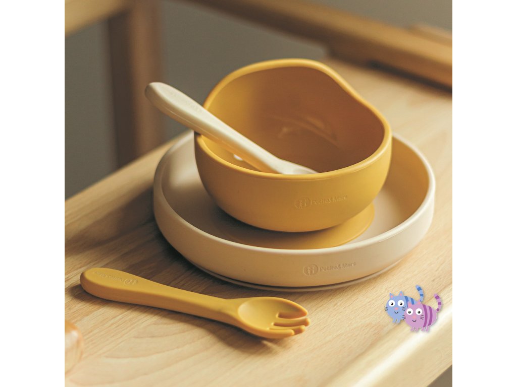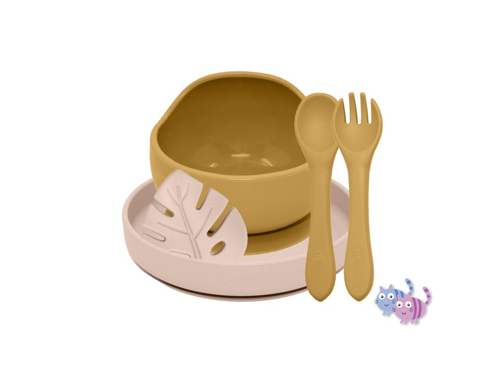 PETITE&MARS Set jídelní silikonový TAKE&MATCH 4 ks Intense Ochre - Desert Sand 6m+
