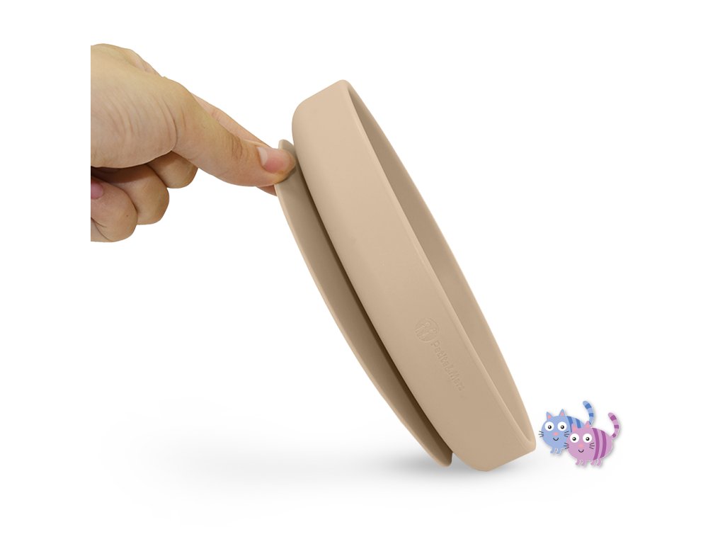 Praktický talíř je celý vyroben z potravinářského silikonu bez obsahu BPA. Díky tomu jej lze bezpečně používat na všechny potraviny, teplé i studené, a jídlo v něm lze bez obav ohřívat v mikrovlnné troubě nebo uchovávat v chladničce. Díky odolnému a měkkému silikonu se nemusíte obávat, že se talíř rozbije, odštěpí nebo zdeformuje – můžete jej nepoškozený používat dlouhou dobu. Je vhodný pro děti od 6 měsíců, které se seznamují s rozšířenou stravou a pro ty, které se již úspěšně učí jíst samy. Zaoblený tvar usnadňuje děťátku papání. Pro pohodlí dítěte i rodičů má talíř přísavku, která přilne k povrchu stolu nebo židle. Předpokladem fungování přísavky je čistý povrch stolu.