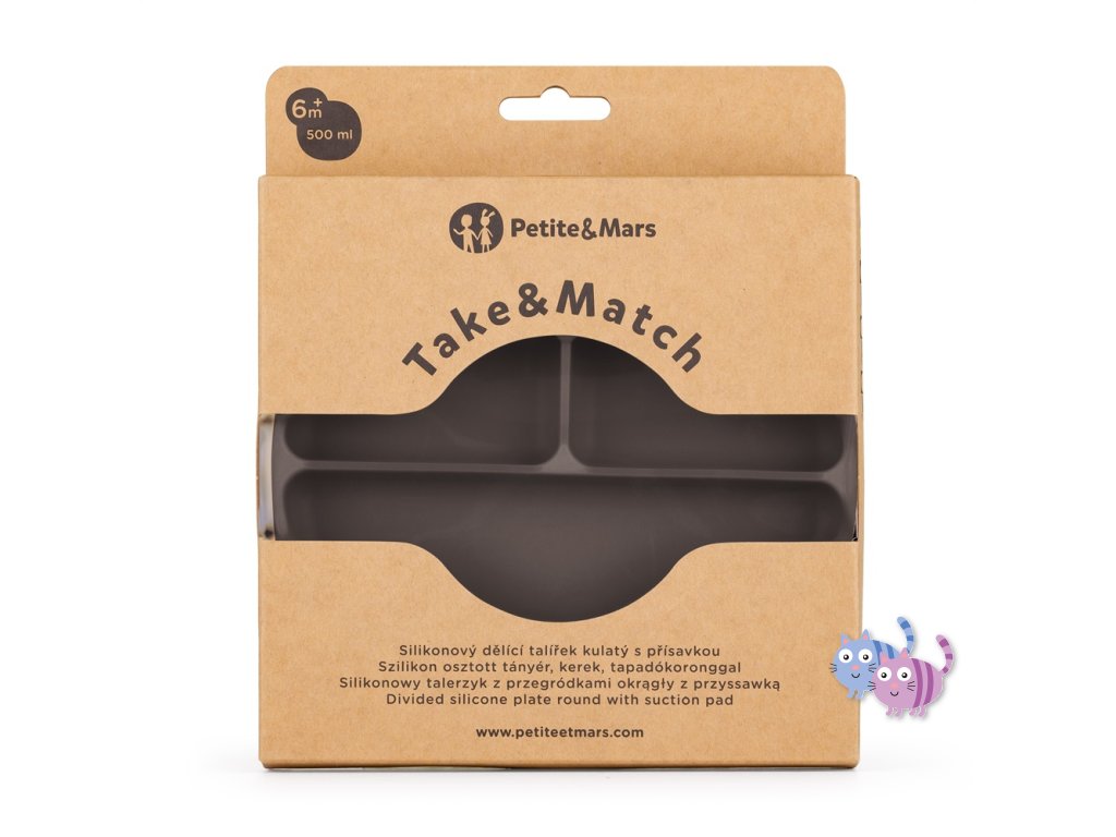PETITE&MARS Talířek silikonový dělící kulatý Take&Match Bitter Cocoa 6m+