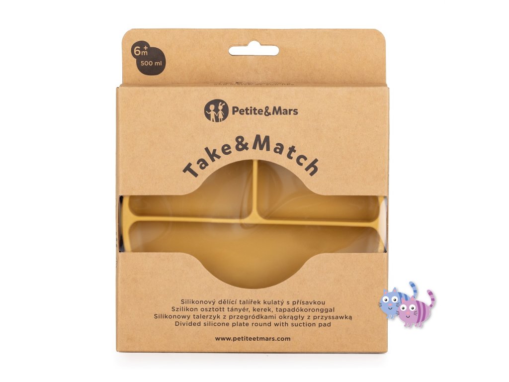 PETITE&MARS Talířek silikonový dělící kulatý Take&Match Intense Ochre 6m+