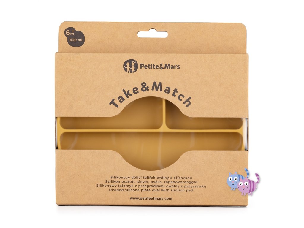 PETITE&MARS Talířek silikonový dělící oválný Take&Match Intense Ochre 6m+
