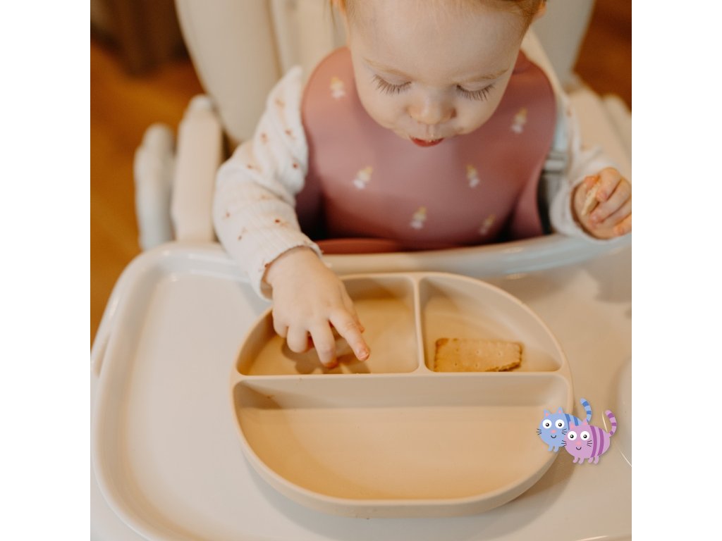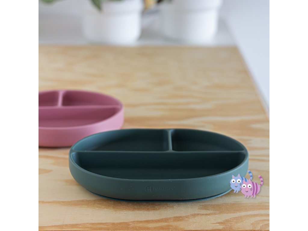 Praktický talíř je celý vyroben z potravinářského silikonu bez obsahu BPA. Díky tomu jej lze bezpečně používat na všechny potraviny, teplé i studené, a jídlo v něm lze bez obav ohřívat v mikrovlnné troubě nebo uchovávat v chladničce. Díky odolnému a měkkému silikonu se nemusíte obávat, že se talíř rozbije, odštěpí nebo zdeformuje – můžete jej nepoškozený používat dlouhou dobu. Je vhodný pro děti od 6 měsíců, které se seznamují s rozšířenou stravou a pro ty, které se již úspěšně učí jíst samy. Díky oválnému tvaru je talíř mimořádně prostorný, což umožňuje servírovat více chutných výrobků v jednom talíři.