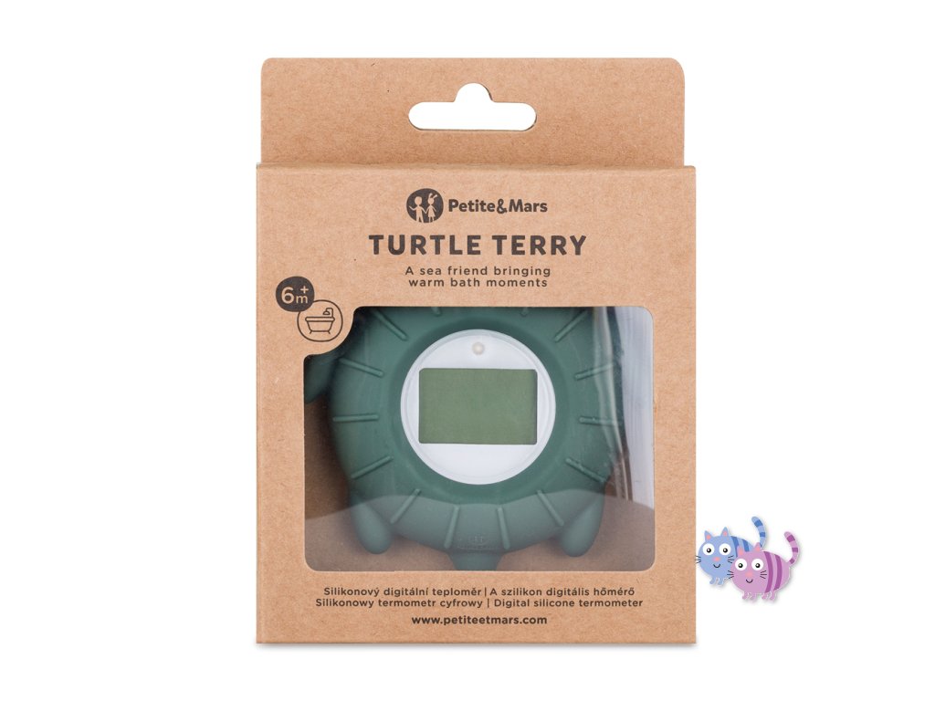 PETITE&MARS Teploměr silikonový digitální Turtle Terry Misty Green 0m+
