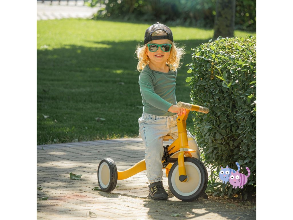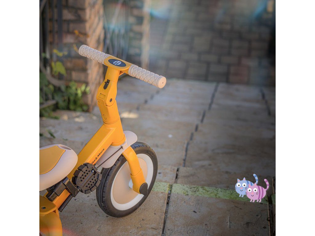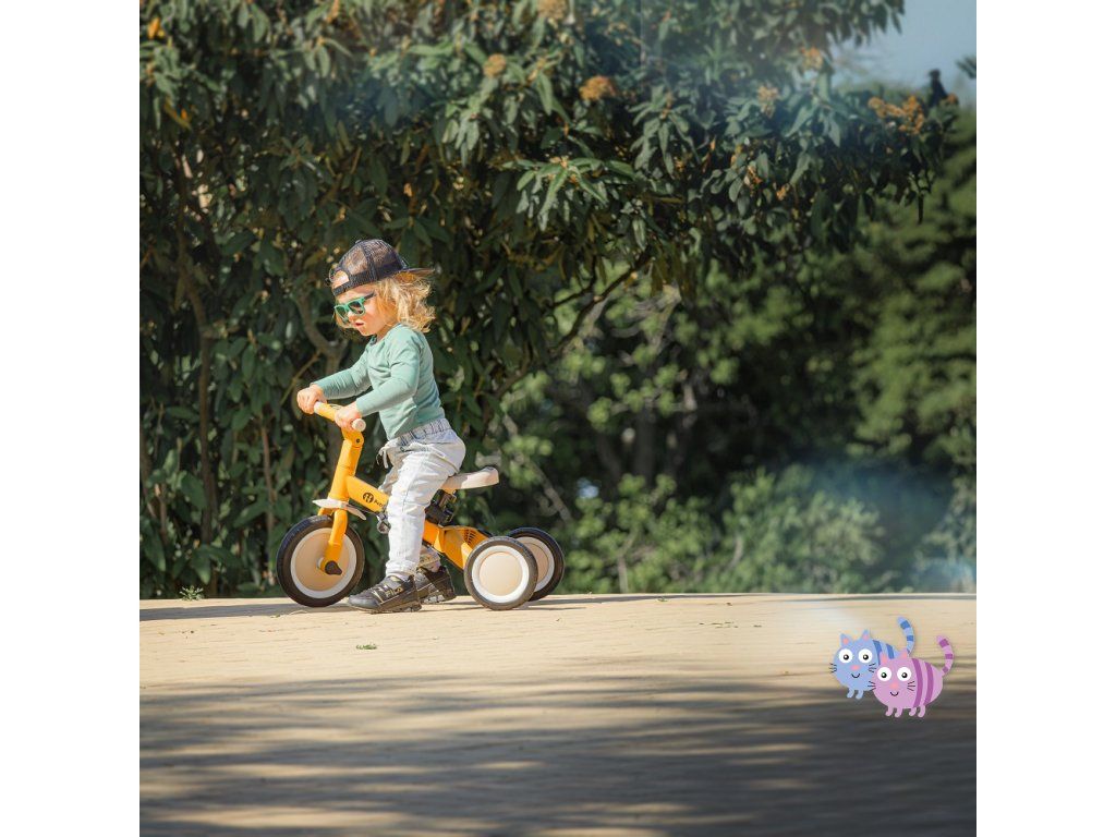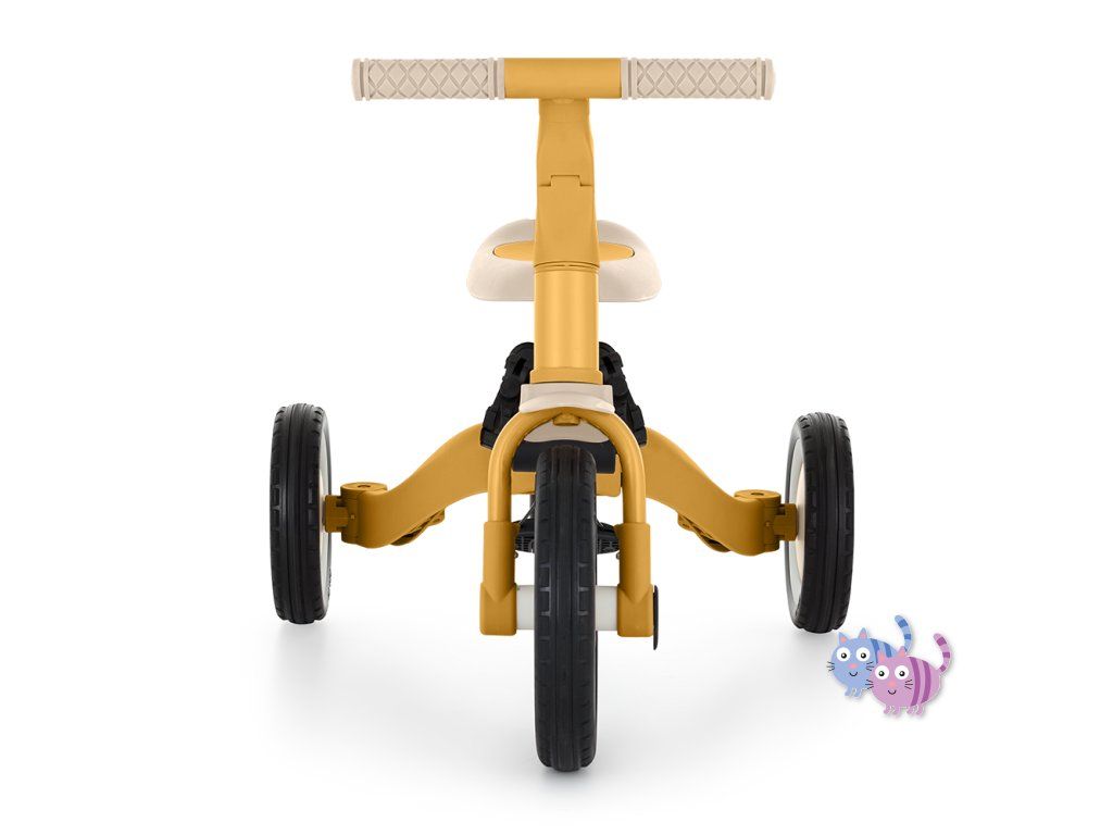 Multifunkční tříkolka určená pro děti od 1,5 do 5 let nebo do 25 kilogramů. Je to nejen dopravní prostředek pro přesun a učení se rovnováhy, ale také společník pro rostoucí dítě během mnoha vývojových fází. Promyšlené měnění se kola se přizpůsobuje potřebám děťátka podle toho, jak se vyvíjejí jeho motorické schopnosti. Zpočátku je to tříkolka s možností asistence rodiče, zatímco konečná verze je standardní kolo s pedály, bez jakýchkoli dalších podpůrných prvků. Díky takovým změnám můžete pomoci svému dítěti naučit se jezdit na dvou kolech.